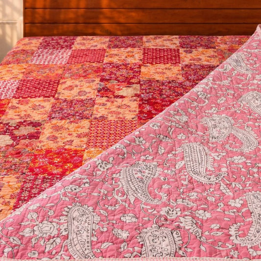 Rangeela - Red- A Patchwork Reversible Quilted Bedcover I Comforter