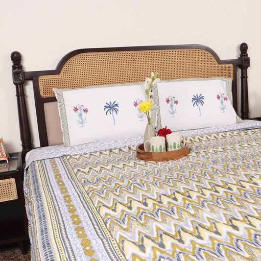 Kalamkari Mustard Leaf - Flat I Fitted Bedsheet (90x108 Inches)