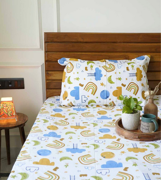 Rainbow - Double Bed Bedsheet 90 x 108 Inches)