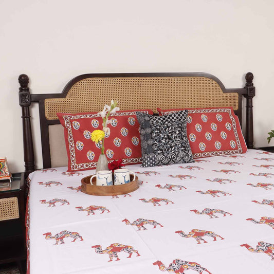 Kalamkari Haathi Ghoda - Flat I Fitted Bedsheet (90x108 inches)