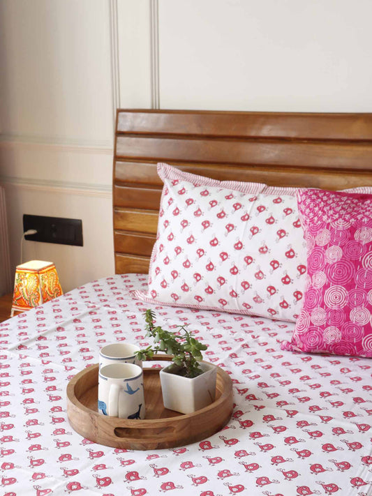 Pink Bird - Handblock Bedsheet (108x108 inches)