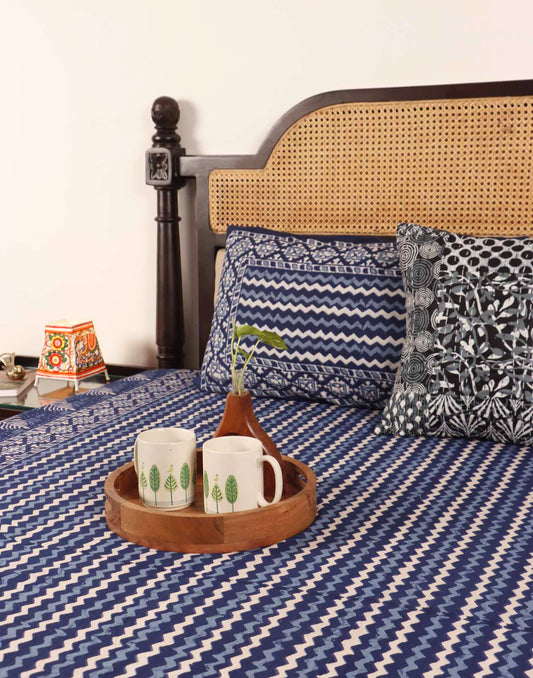 Indigo Chevron – Flat I Fitted Bedsheet (90×108 Inches)