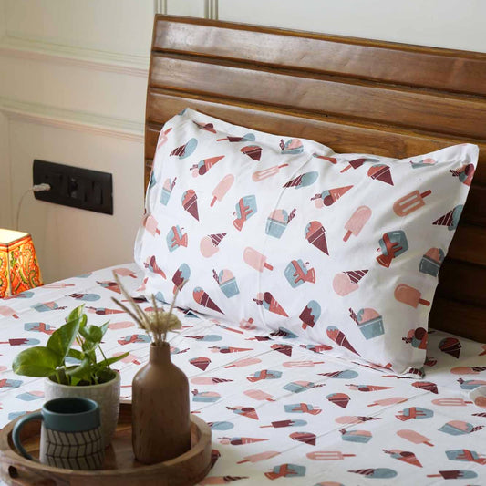 Ikkat - Blue - Flat/Fitted Bedsheet (90x108 Inches)