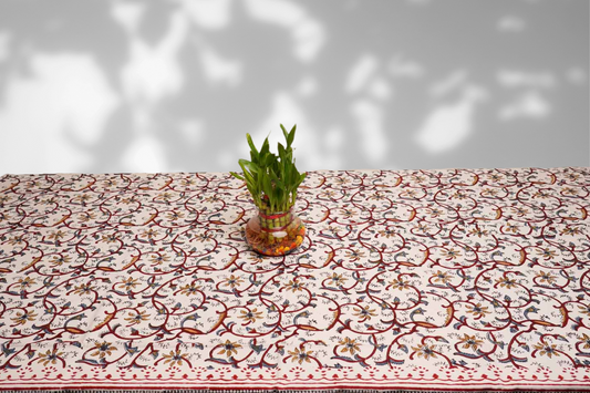 Kalamkari Bel - Hand Block Six seater Dining table cover