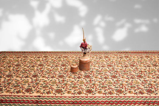 Kalamkari Phulwari - Hand Block Six seater Dining table cover