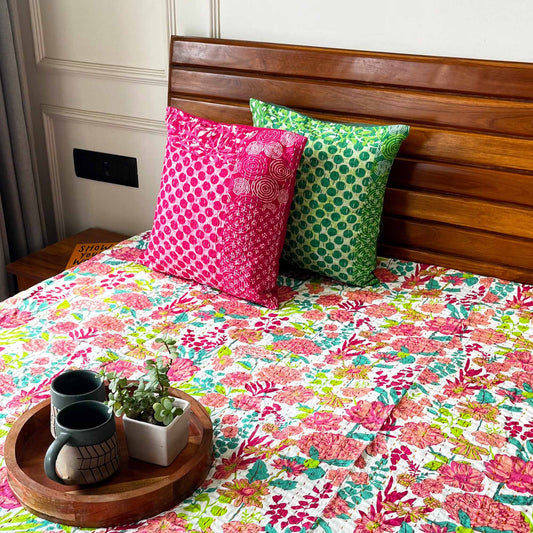 Madhubala - Quilted and Reversible Handblock Bedcover I Comforter