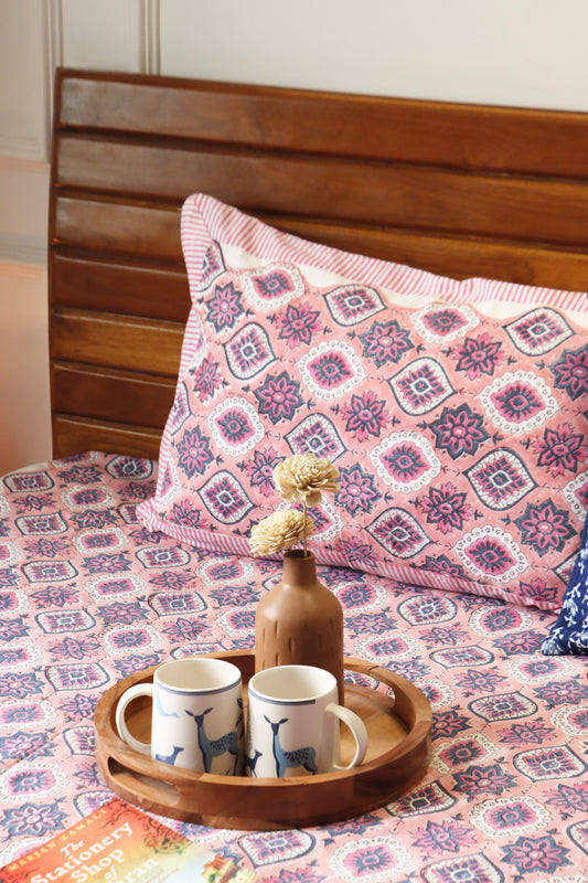 Pink Phool - Hand block Bedsheet (90x108 Inches)