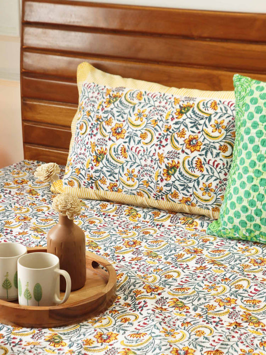 Masakali Yellow - Handblock Bedsheet (100x108 Inches)