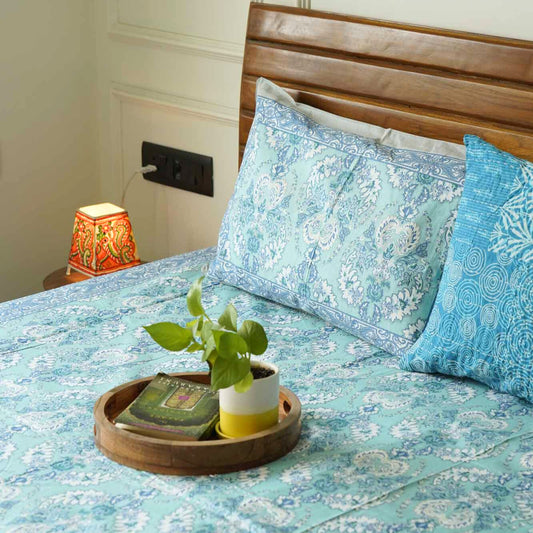 Kalamkari Blue B - Flat I Fitted Bedsheet (108x108 Inches)