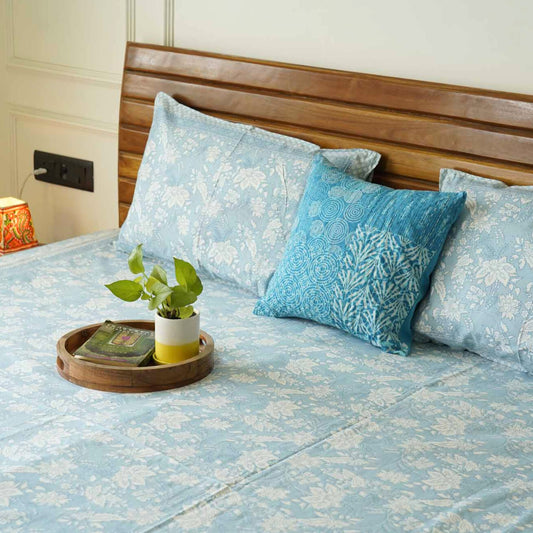 Kalamkari Blue S - Flat I Fitted Bedsheet (108x108 Inches)