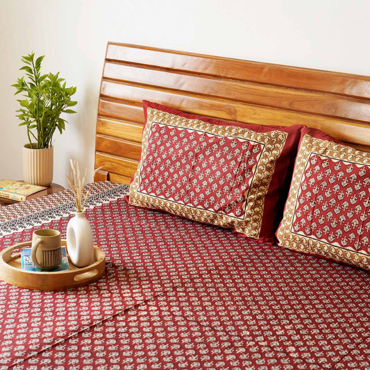 Kalamkari – Maroon – Flat I Fitted Bedsheet (90x108 Inches)