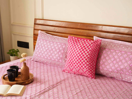 Rhombus - Pink – Flat I Fitted Bedsheet (90x108 Inches)