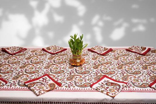 Kalamkari Paisley - Hand Block Eight seater Dining table cover with napkins