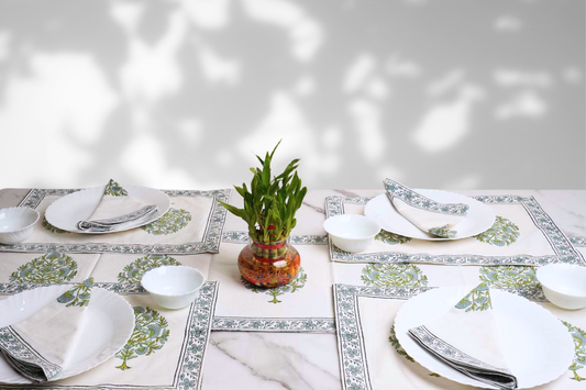 Green - Table Runner, Table Mats and Napkins