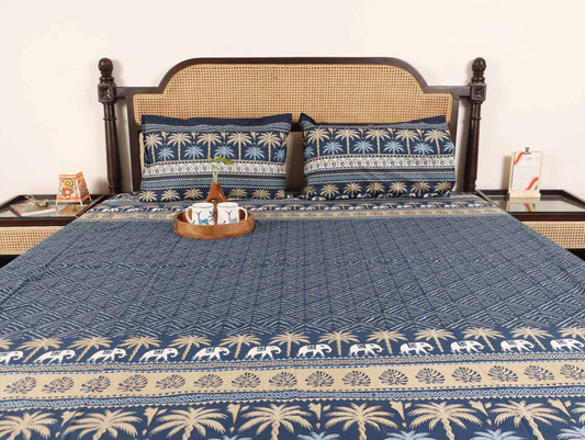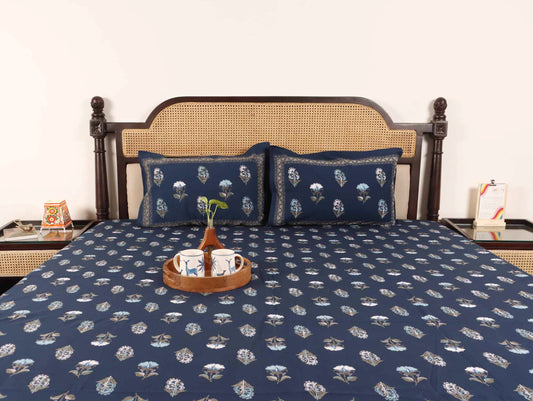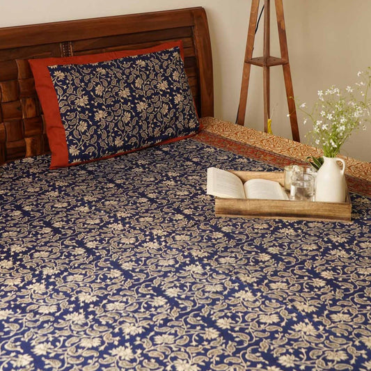 Blue Kalamkari - Single Bed Bedsheet (60x90 Inches)