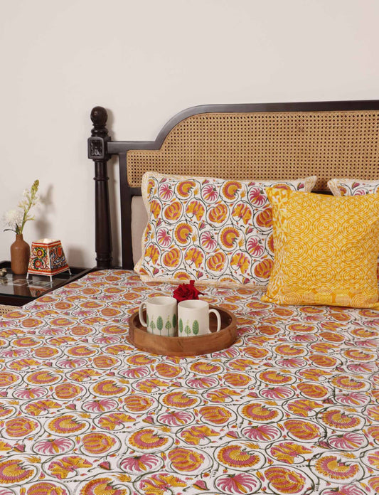 Surajmukhi - Handblock Bedsheet (108x108 Inches)