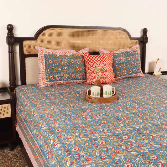 Hand block Kalamkari Blue Rangoon (108x108 Inches)