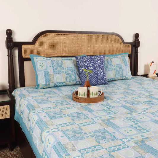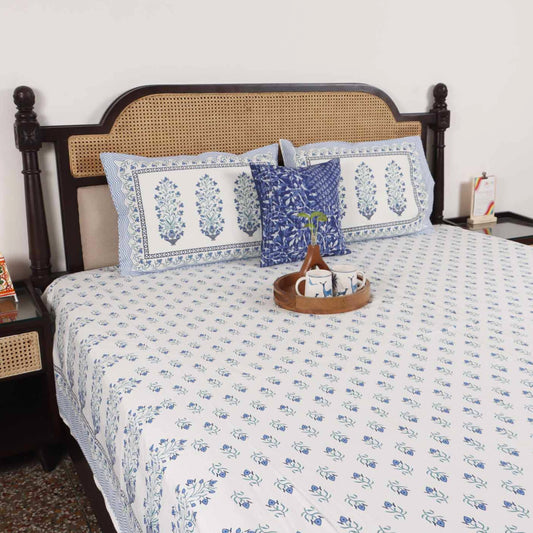 Sadabahaar Blue - Flat I Fitted Bedsheet (108x108 Inches)