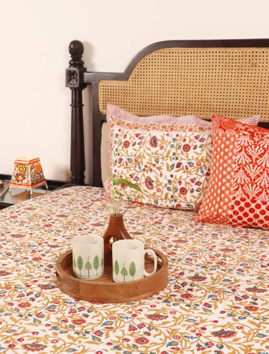 Hand Block Kalamkari White Rangoon (108x108 Inches)