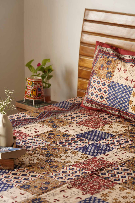 Kalamkari β Patchwork - Single Bed Bedsheet (60x90 Inches)
