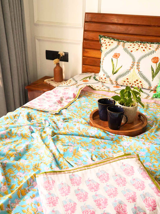Pair Of Single Bed Block Print Reversible Mul Dohar – Sadabahaar