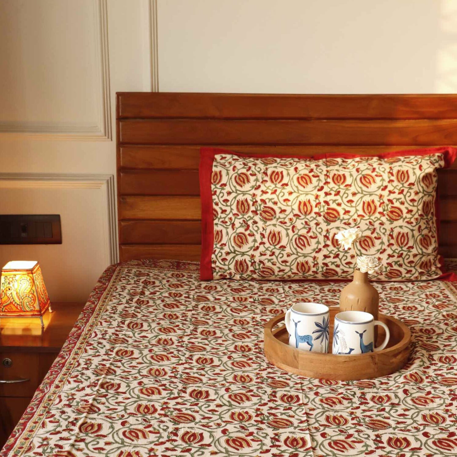 Kalamkari Jaal - Hand Block Single Bed Bedsheet (60x90 Inches)