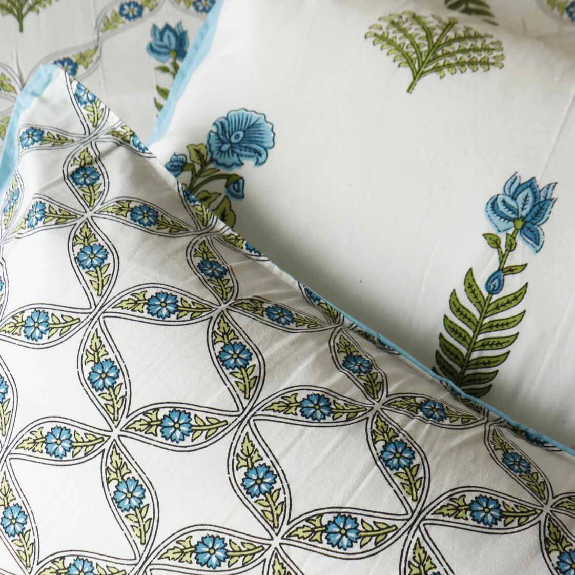 Krisha Blue - Flat I Fitted Bedsheet (100x108 Inches)