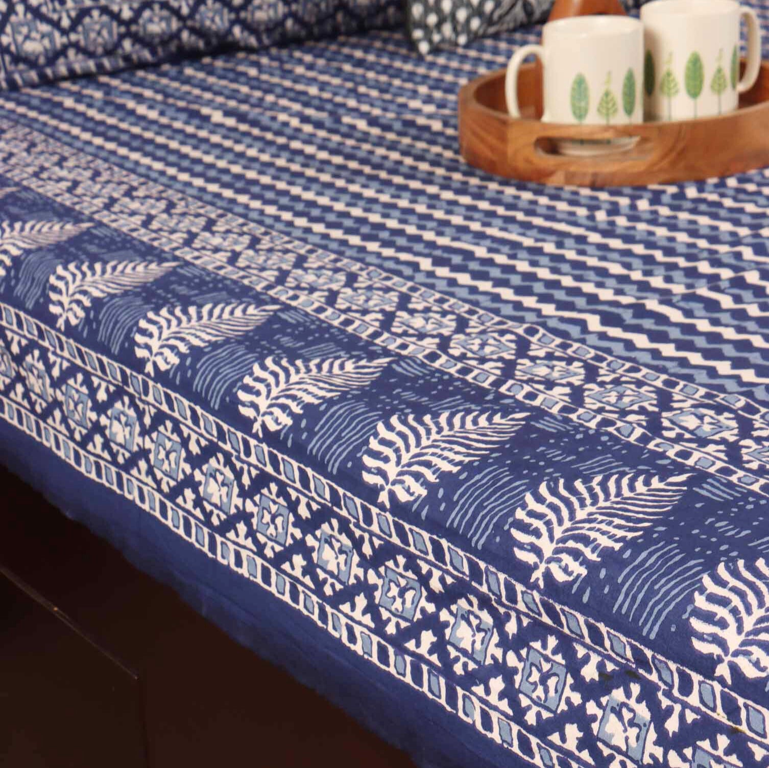 Indigo Chevron – Flat I Fitted Bedsheet (90×108 Inches)