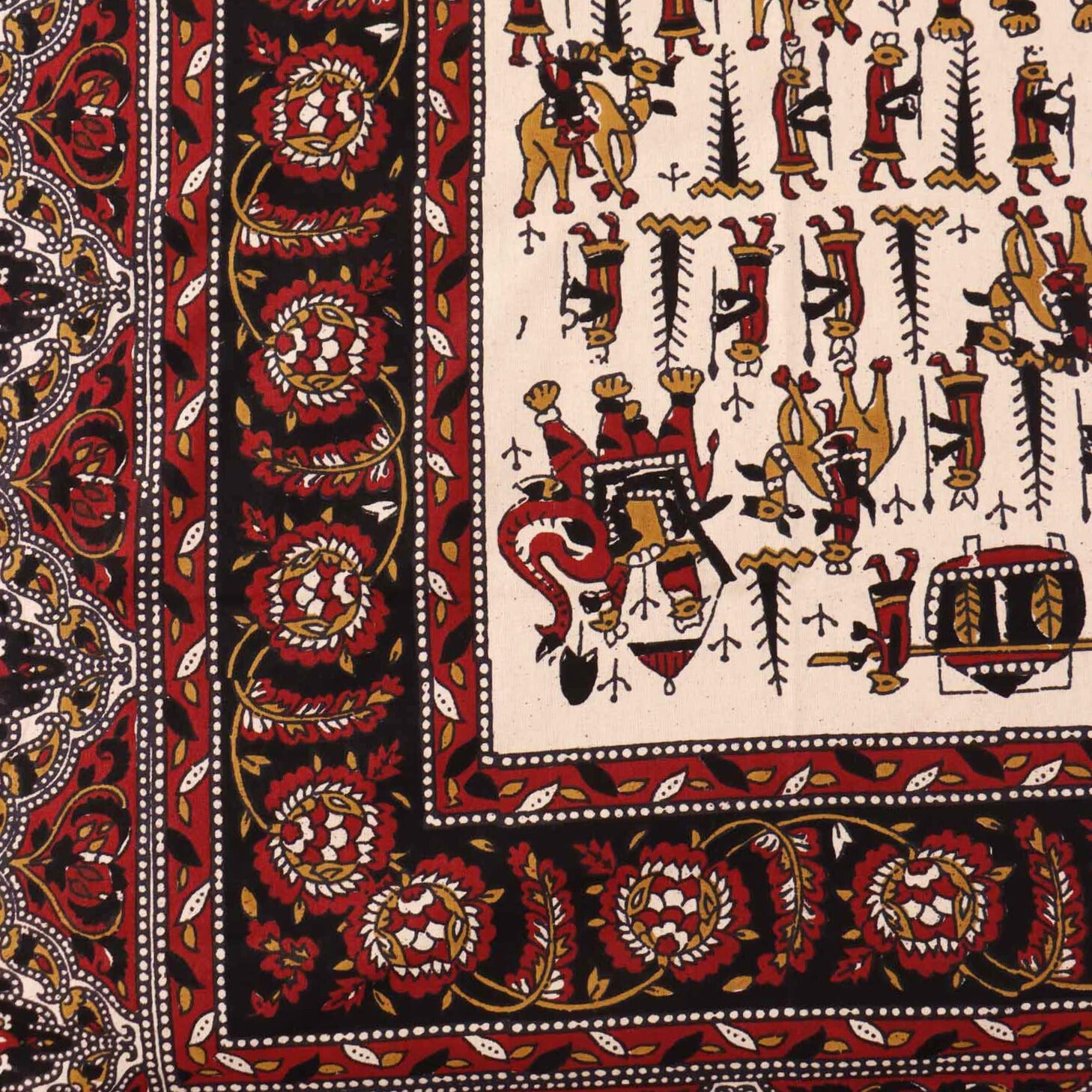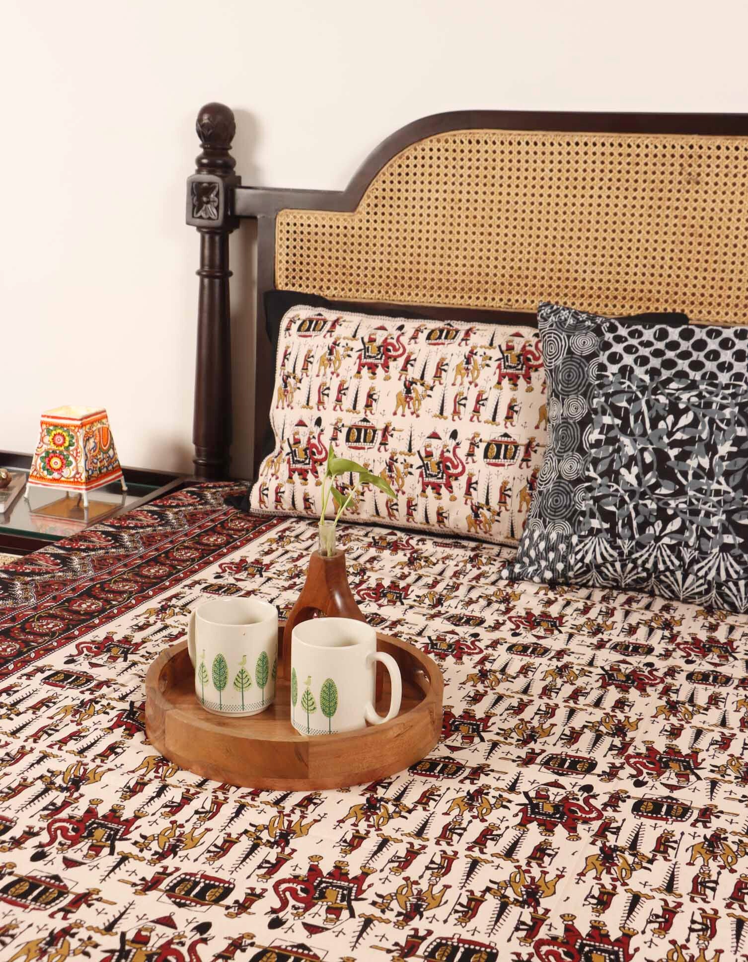 Kalamkari Haathi Ghoda - Flat I Fitted Bedsheet (90x108 inches)