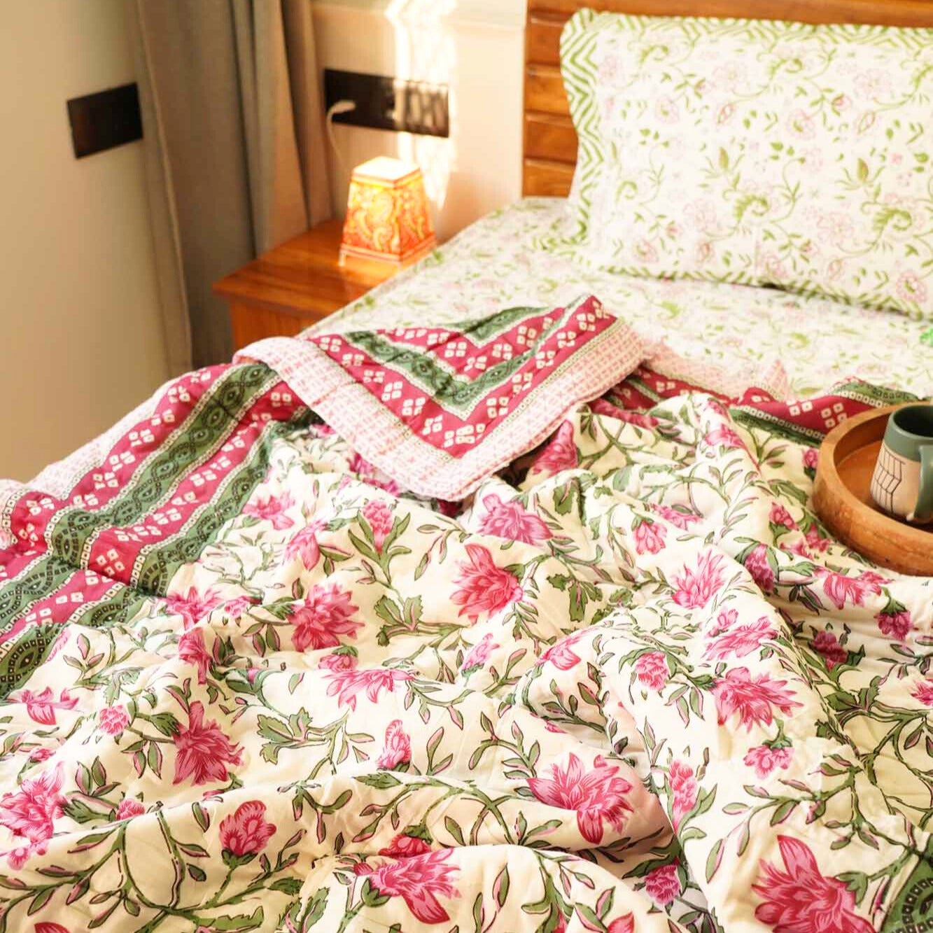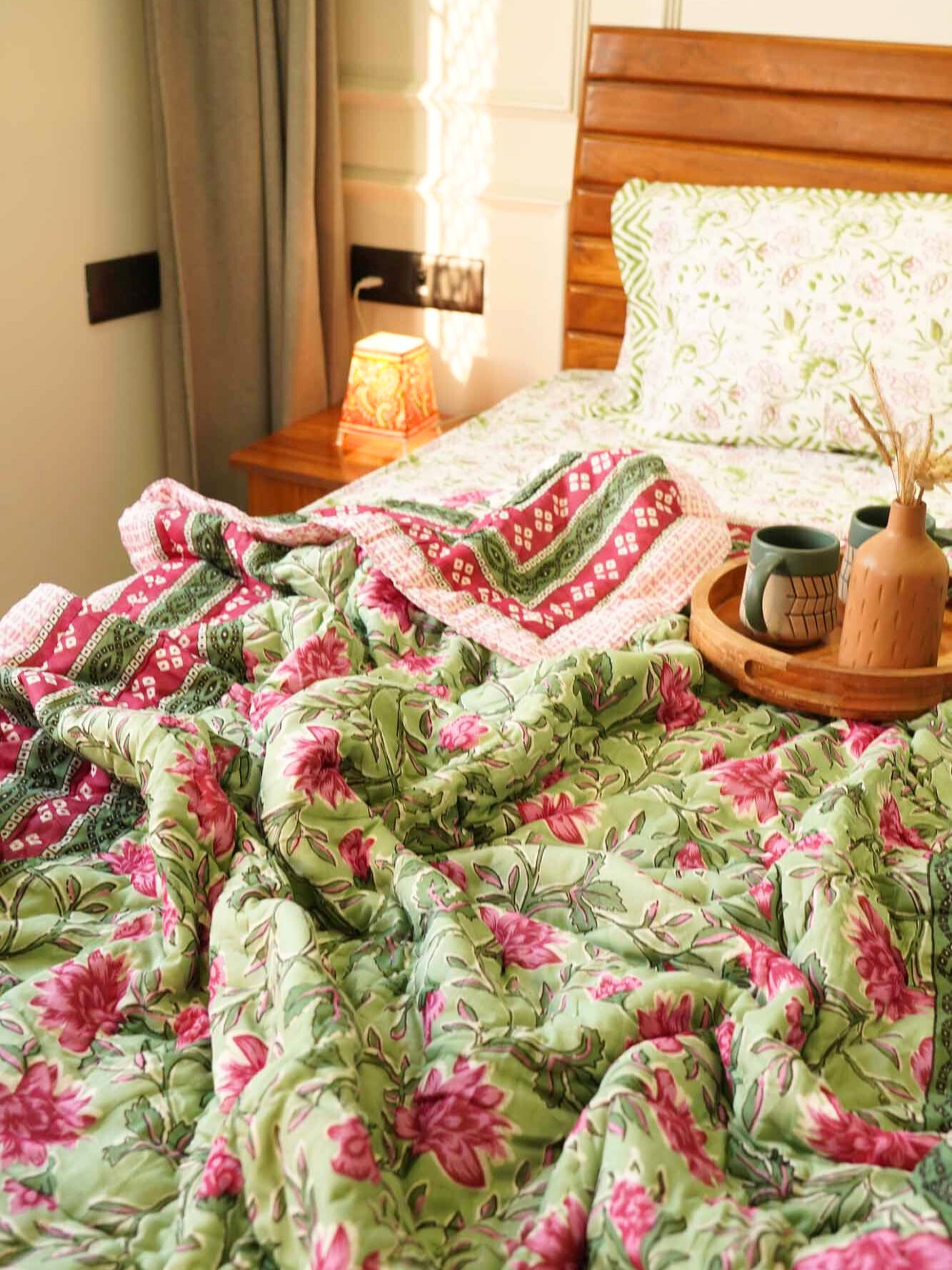 Stuffed with desi cotton—natural, breathable, and doctor-approved—it’s safe for the tiniest babies and beloved by adults who appreciate good sleep. Whether you're bundling up in an air-conditioned room or just need a little comfort, this quilt strikes the perfect balance between cozy and light.