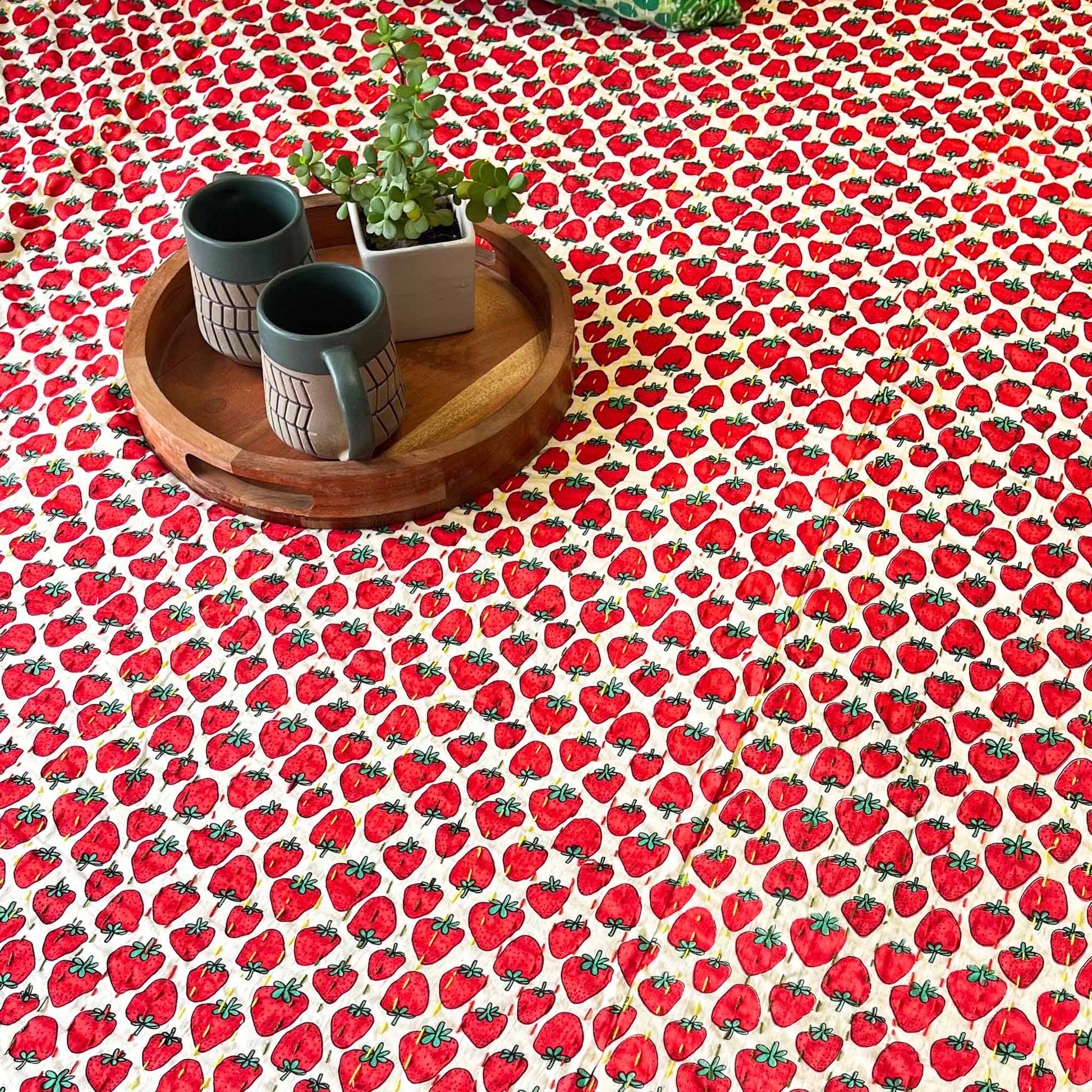 Well, it's a piece of Rajasthan magic, lovingly handmade in the charming village of Barmer, one stitch at a time with traditional Kantha stitching. It's perfect for those lazy daytime lounging sessions – throw it over your sheets or let it steal the spotlight as a decorative accent that screams "Pinterest-Y  Vibes." And hey, while you're at it, why not grab some Kantha Stitched Cushion Covers to really take the look up a notch? Trust us, your home will thank you!
