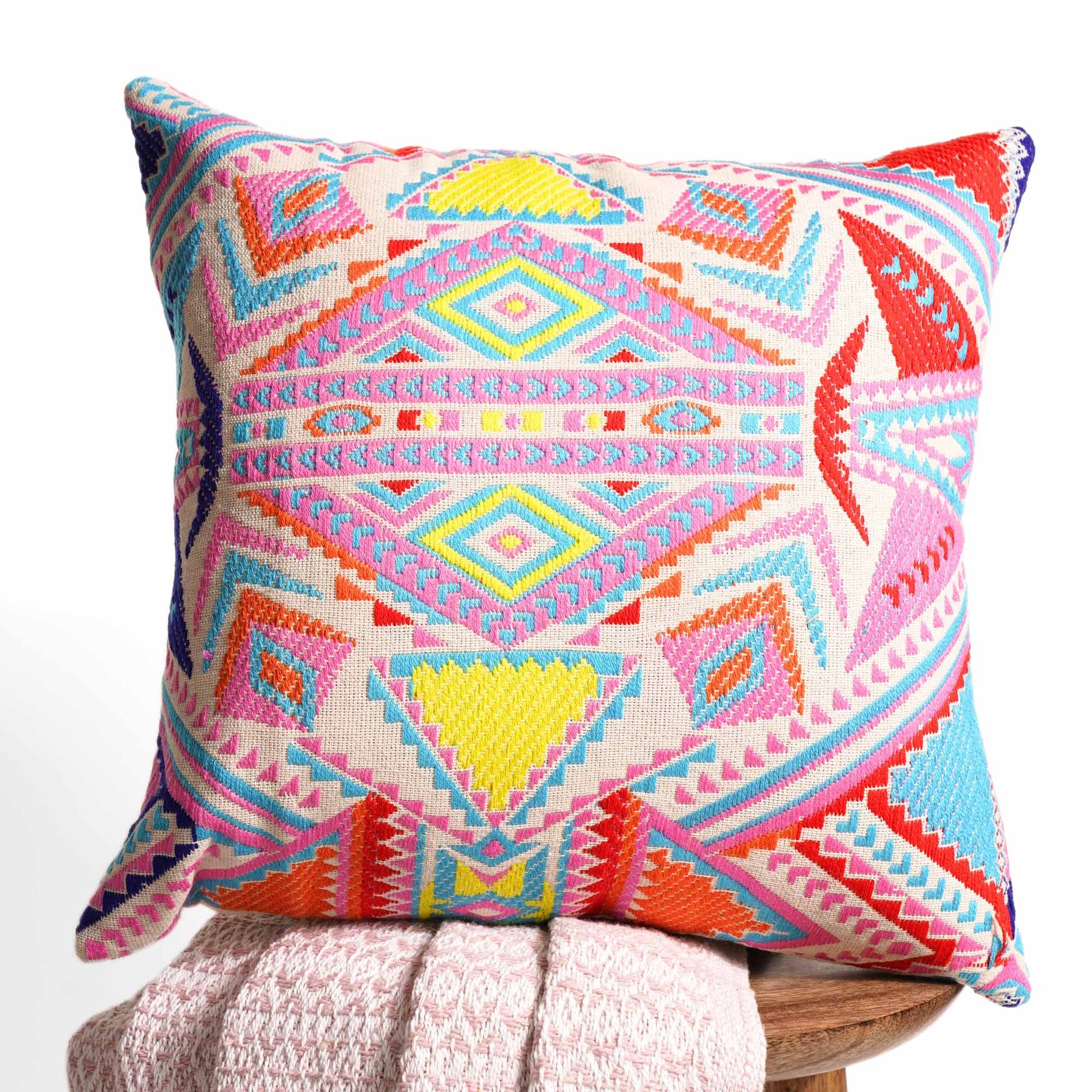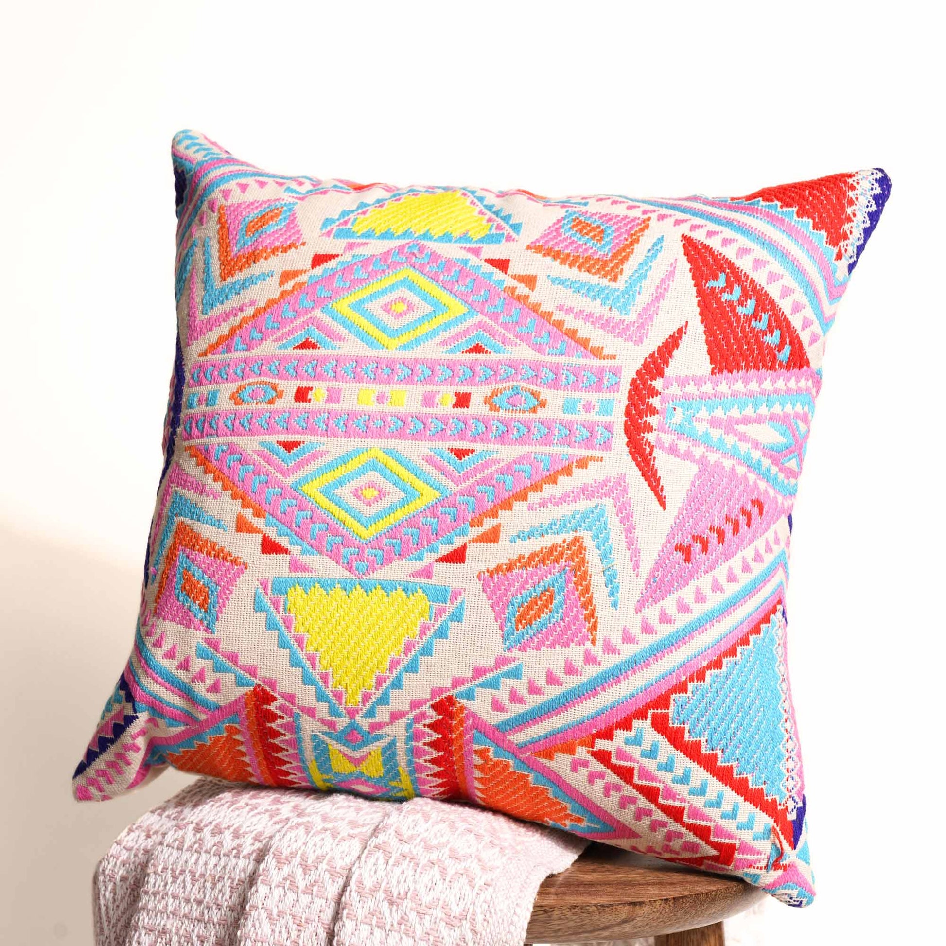 Introducing our Vibrant Jacquard Cushion Cover! This 16 x 16-inch beauty boasts a kaleidoscope of colors and features a luxurious jacquard fabric on the front, paired with a pure cotton backline for ultimate comfort. With a convenient zip enclosure, these cushion covers add a pop of color to your home decor. Please note that they should be hand washed to preserve their exquisite design.