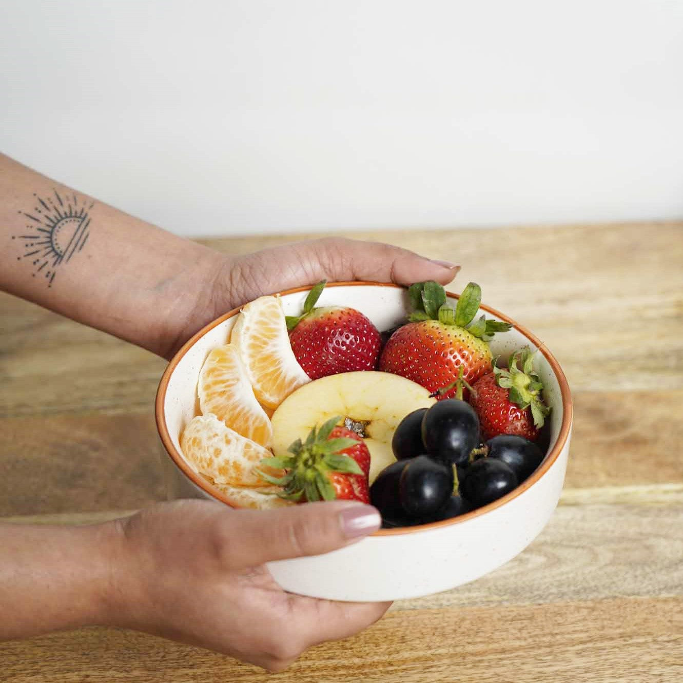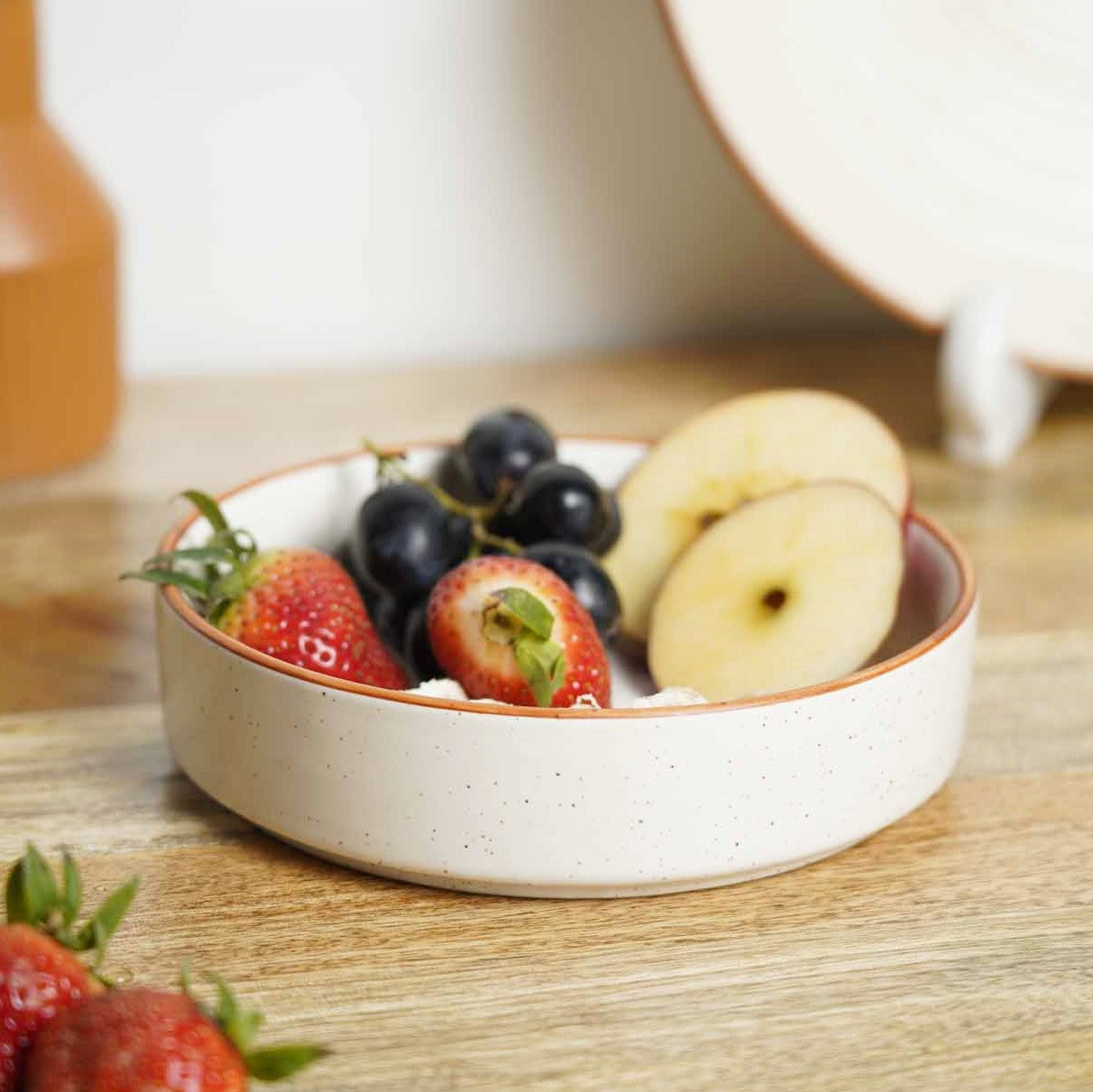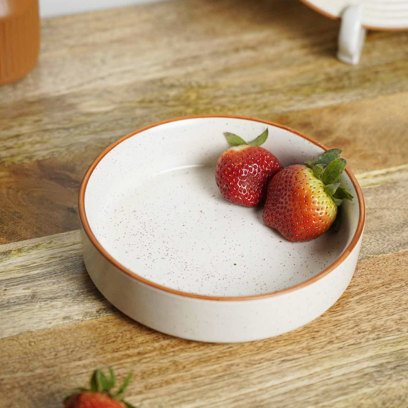 Introducing our exquisite "Cookie Crumble" collection of premium matte stoneware ceramics, crafted to perfection in Khurja - the ceramic city of India. The collection features a timeless ivory white color, accentuated by a warm brown border and delightful speckles that add a touch of elegance and uniqueness to each piece.
