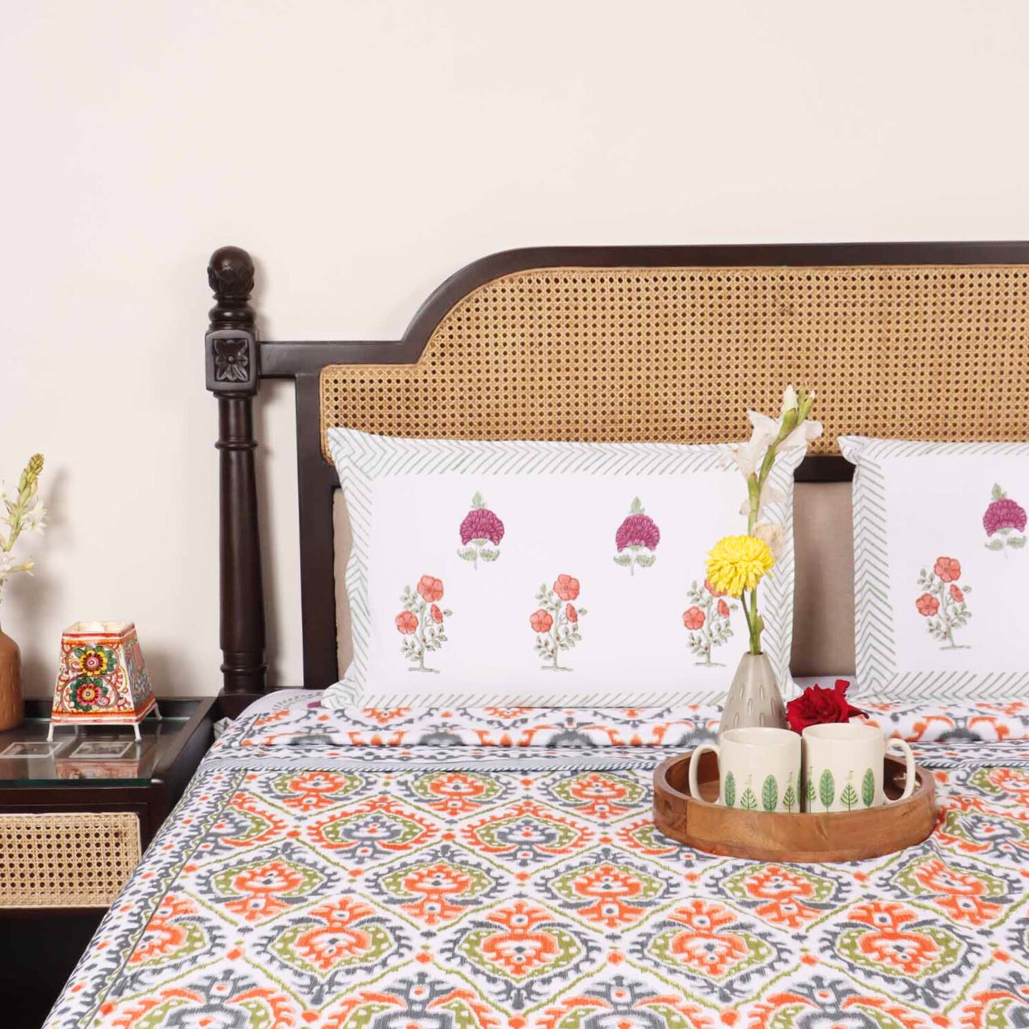 Double Bed Reversible Mul Dohar – Ikkat Orange