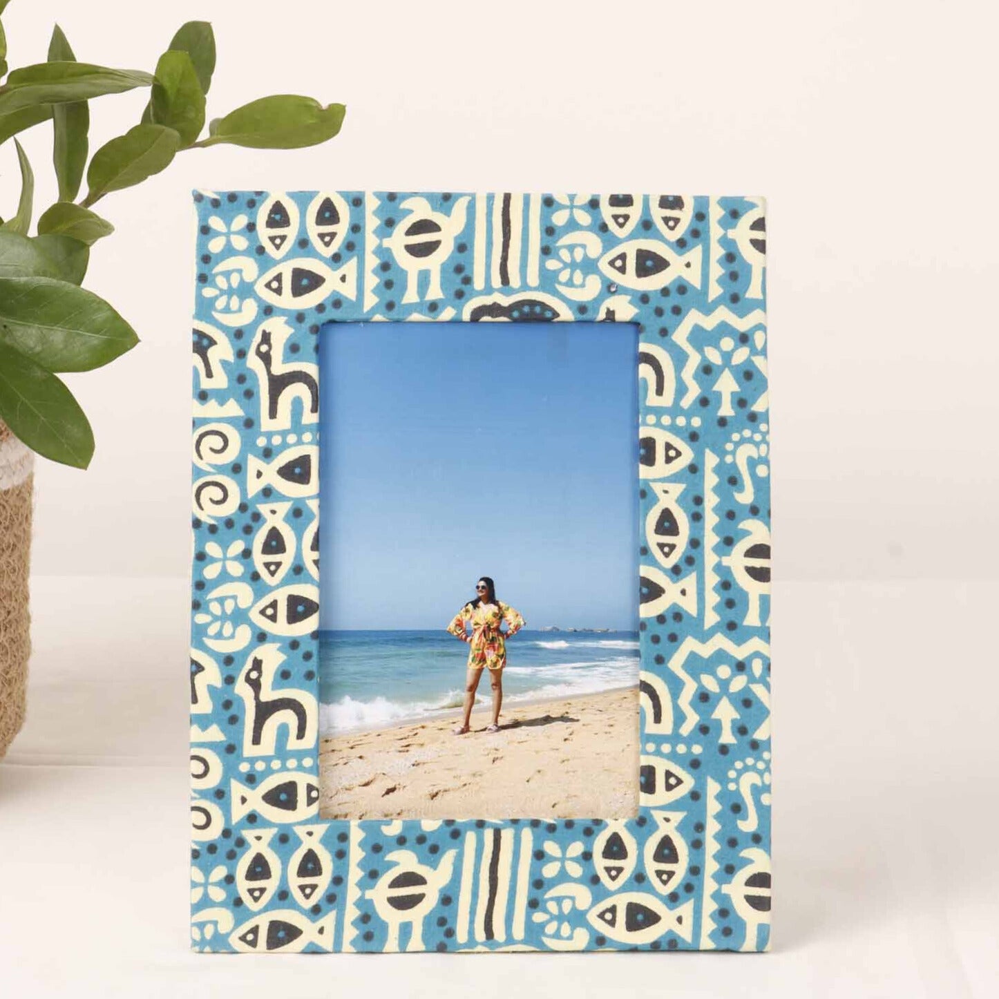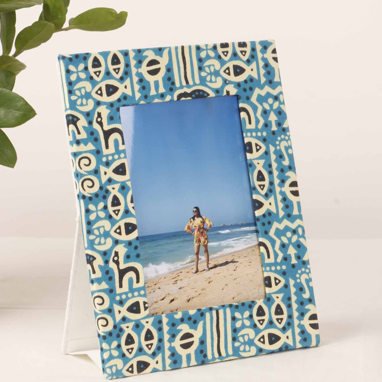 Capture your cherished memories with Local Kala's elegant photo frame, crafted from printed fabric and set on a sturdy cardboard base. Designed to beautifully complement any décor, this frame is perfect for displaying portrait pictures of size 4x6 inches. Its vibrant fabric design adds a unique touch of charm, making it a delightful addition to your home or a thoughtful gift for loved ones. Treasure your moments, framed in style!