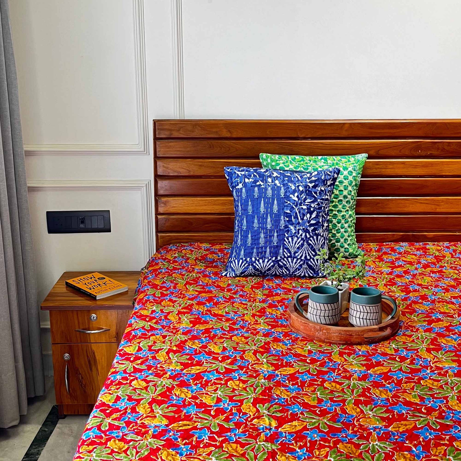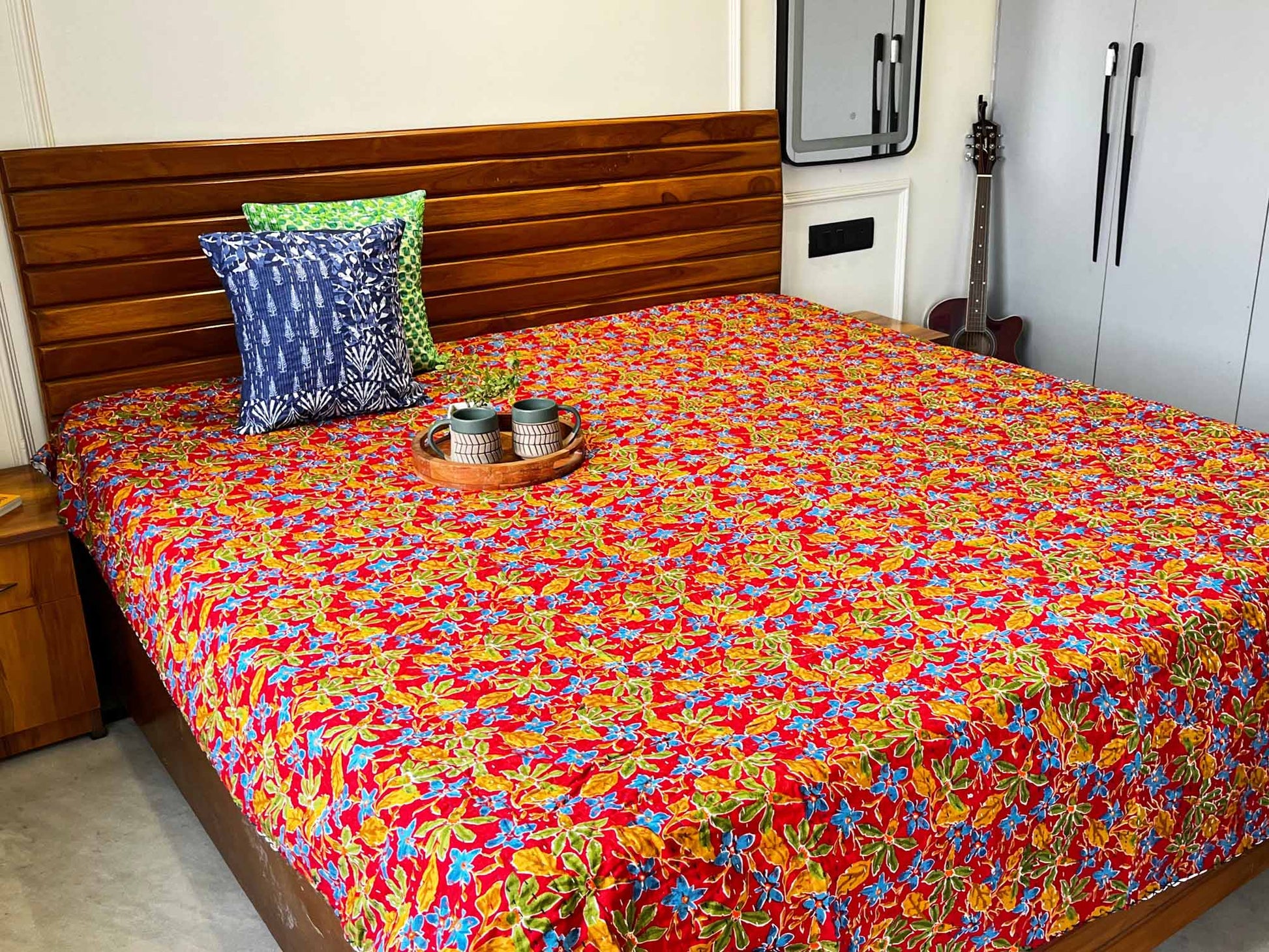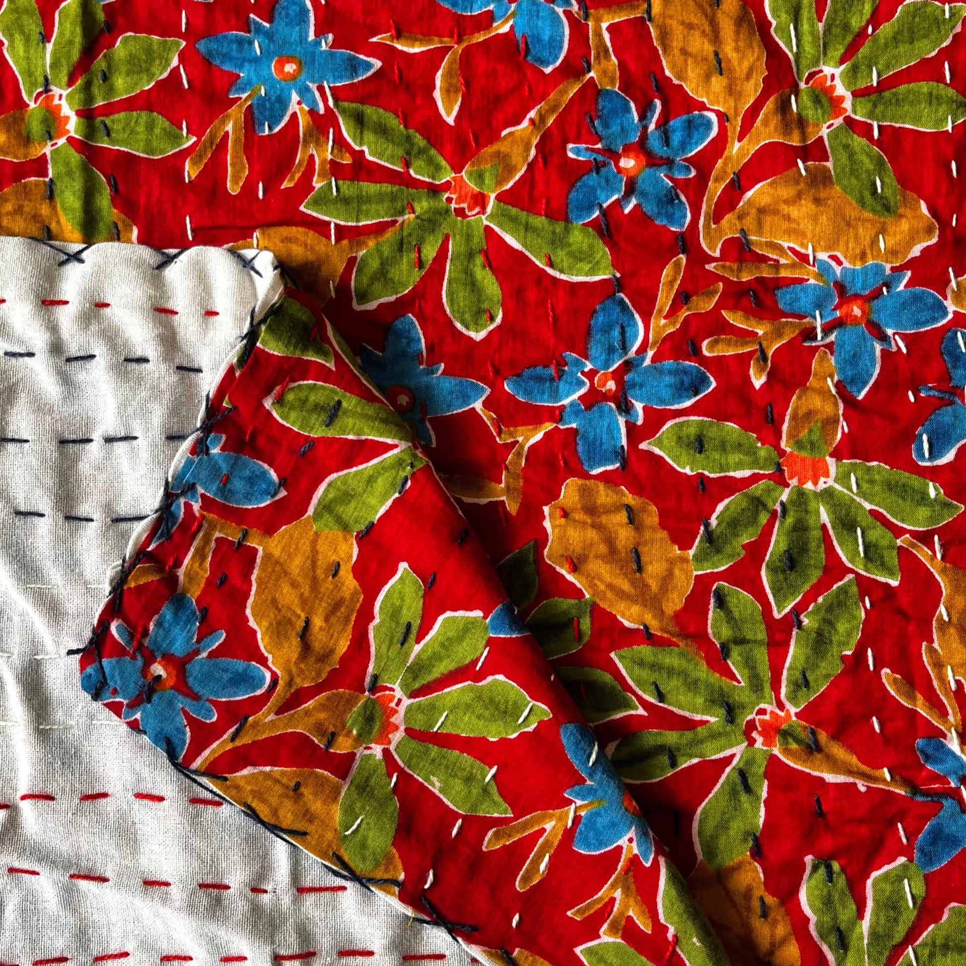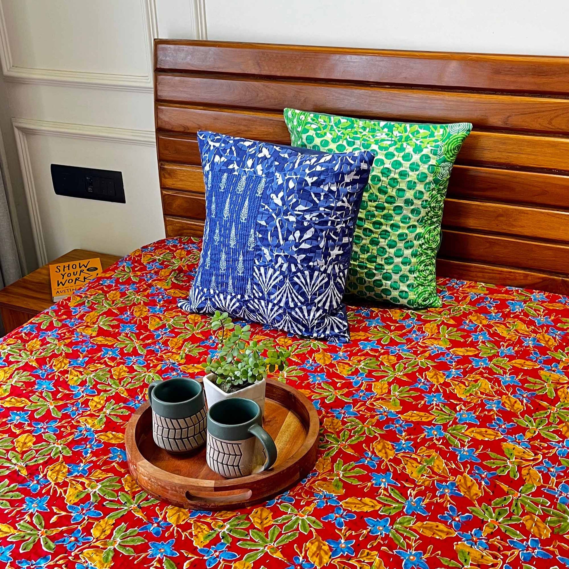 Well, it's a piece of Rajasthan magic, lovingly handmade in the charming village of Barmer, one stitch at a time with traditional Kantha stitching. It's perfect for those lazy daytime lounging sessions – throw it over your sheets or let it steal the spotlight as a decorative accent that screams "Indie Vibes." And hey, while you're at it, why not grab some Kantha Stitched Cushion Covers to really take the look up a notch? Trust us, your home will thank you!