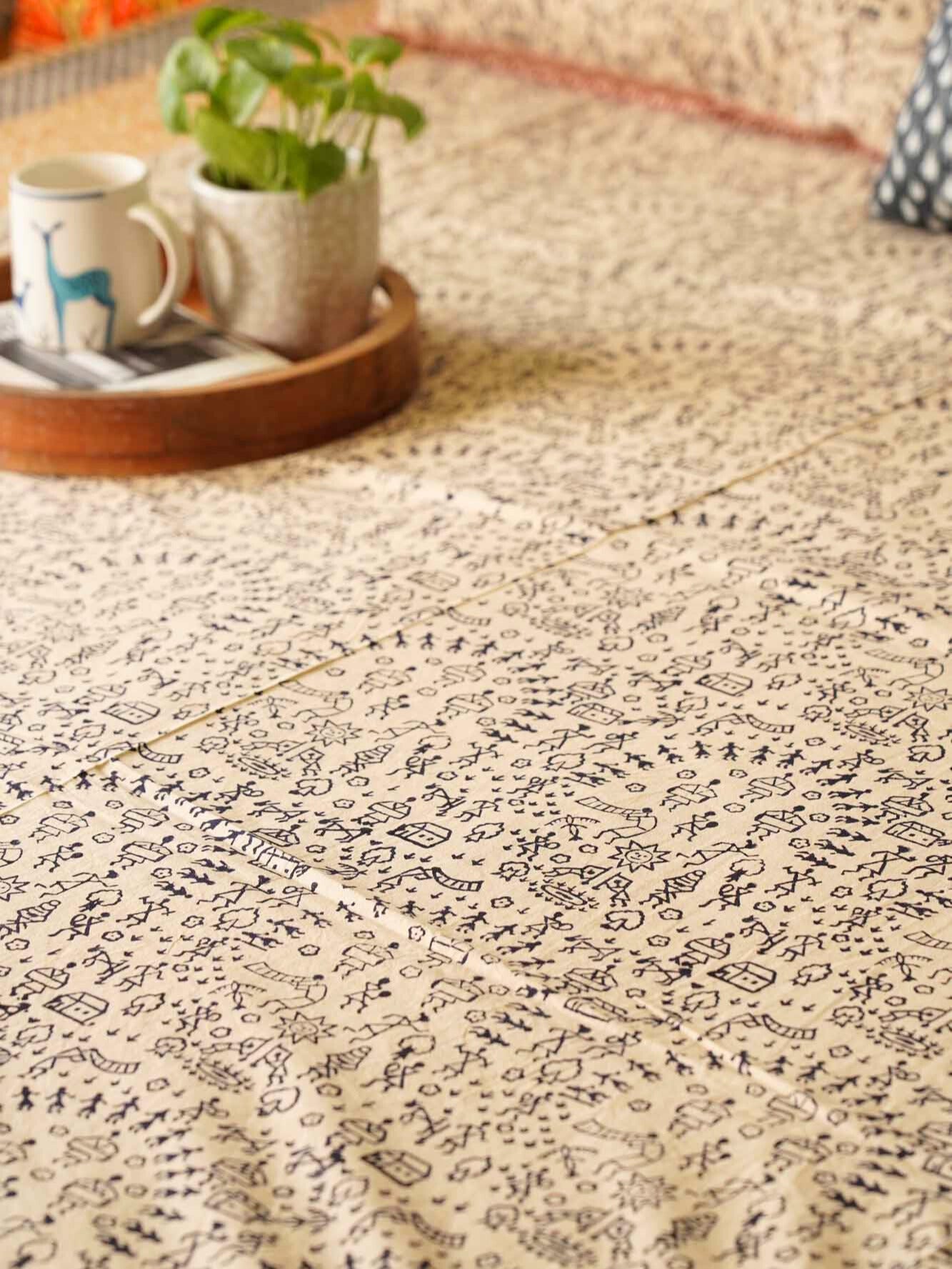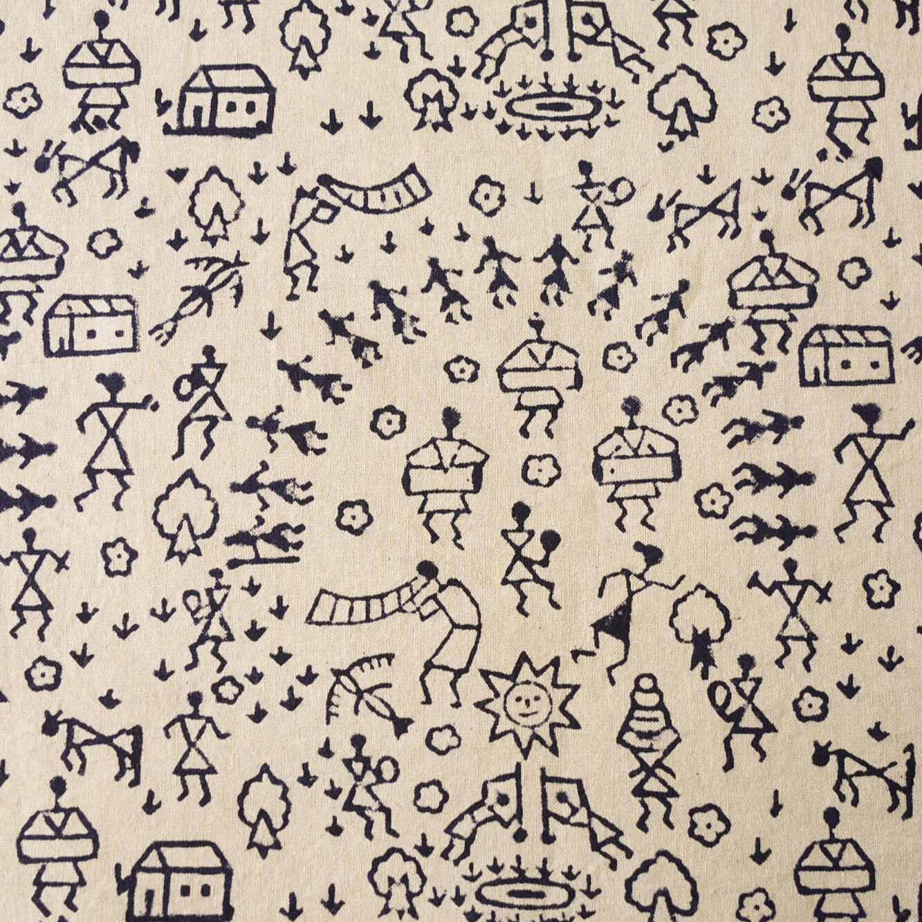Hand Block Kalamkari Worli Black Single Bed Bedsheet (60x90 Inches)