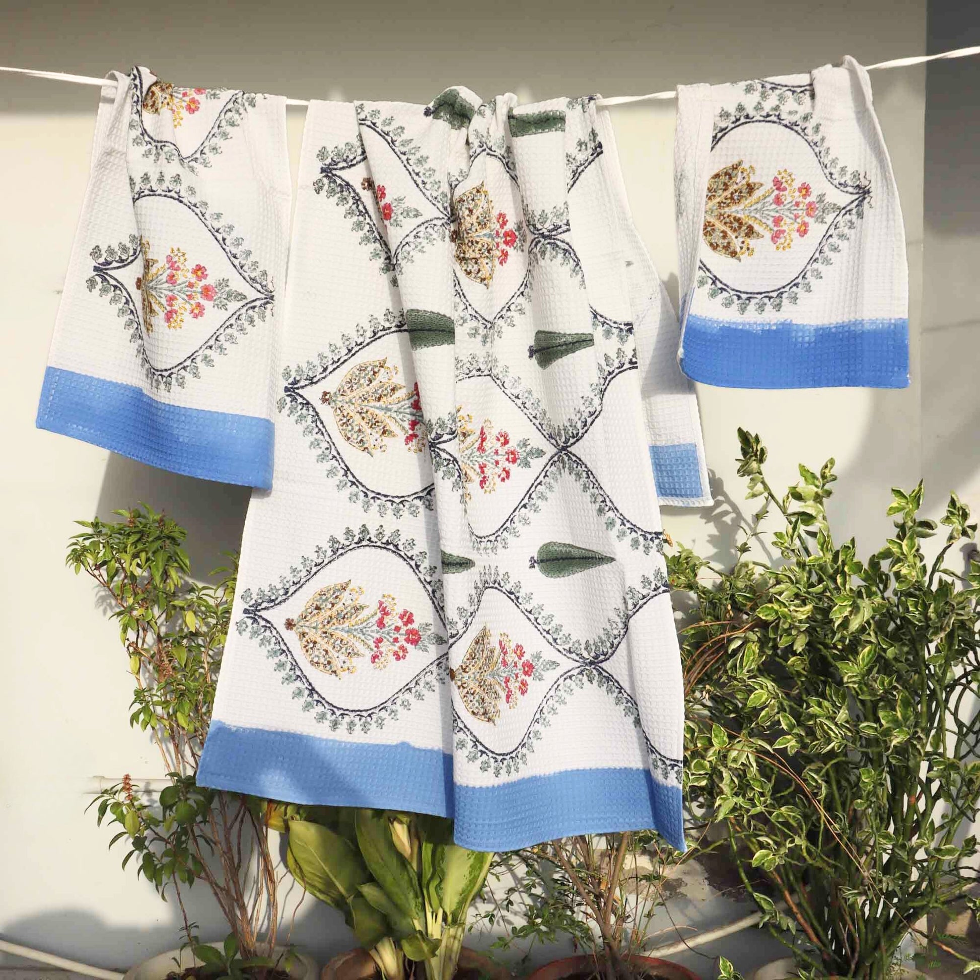 Handblock Printed Waffle Towel - Set of 3 - Bela