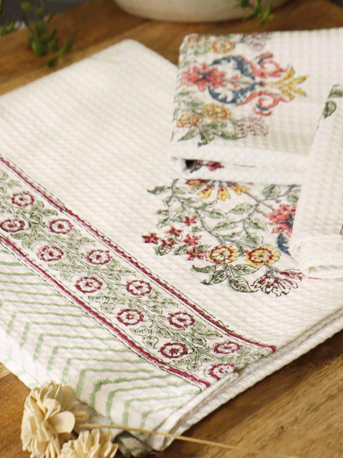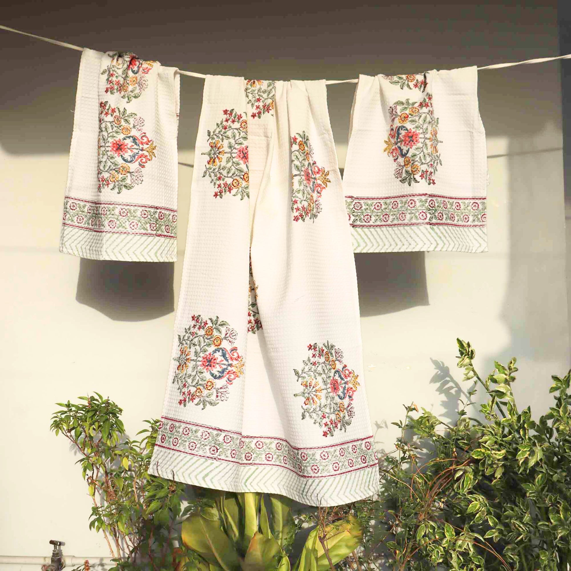 Handblock Printed Waffle Towel - Set of 3 - Guldasta
