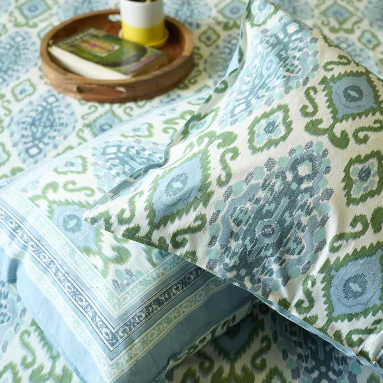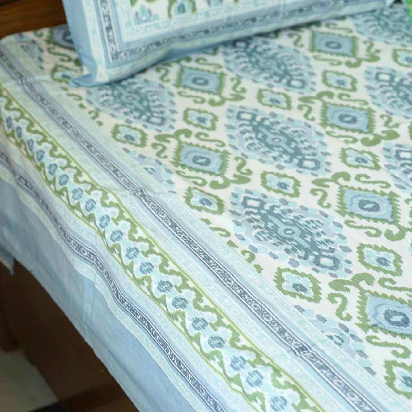 Ikkat - Blue - Flat/Fitted Bedsheet (90x108 Inches)