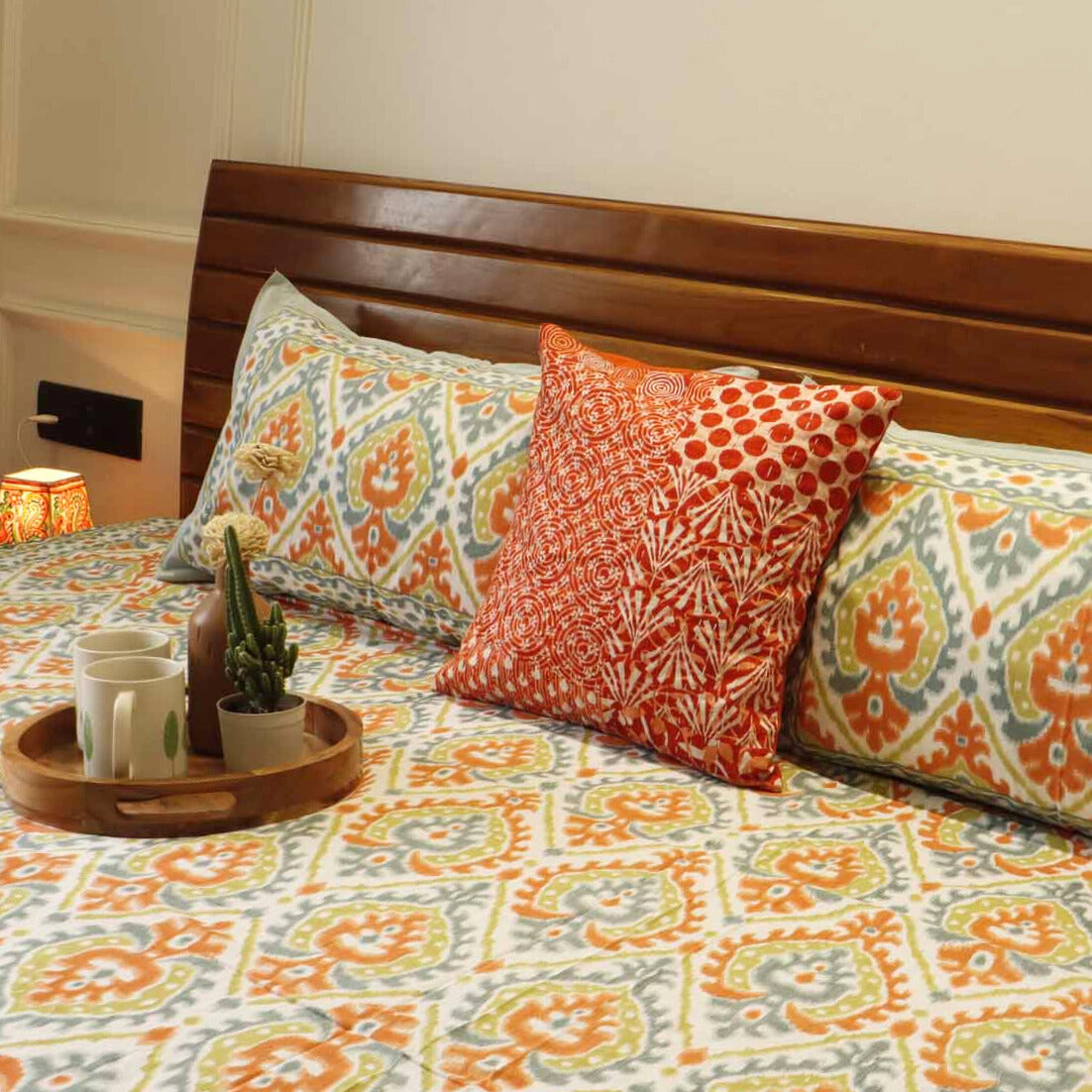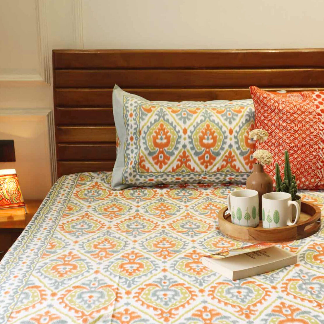 Ikkat Orange New - Flat I Fitted Bedsheet (100 x 108 Inches)