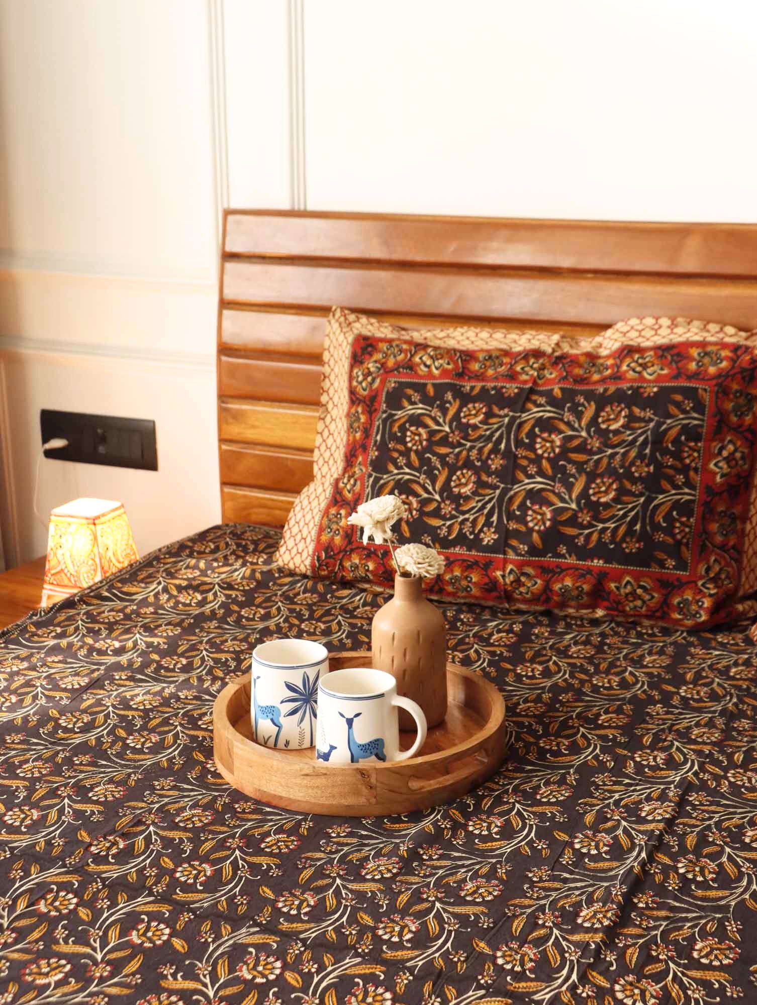Kalamkari Black s - Flat I Fitted Bedsheet (108x108 Inches)