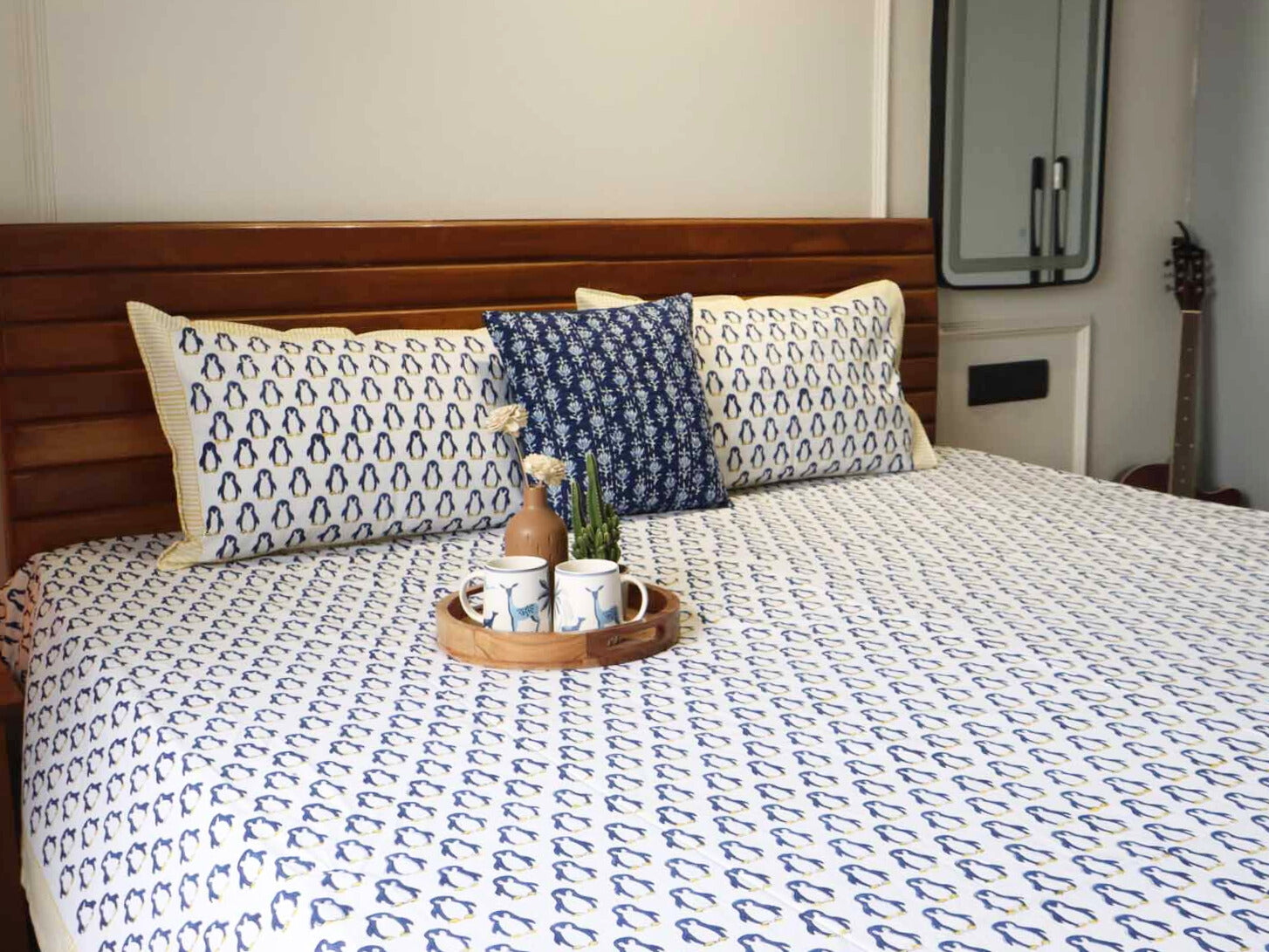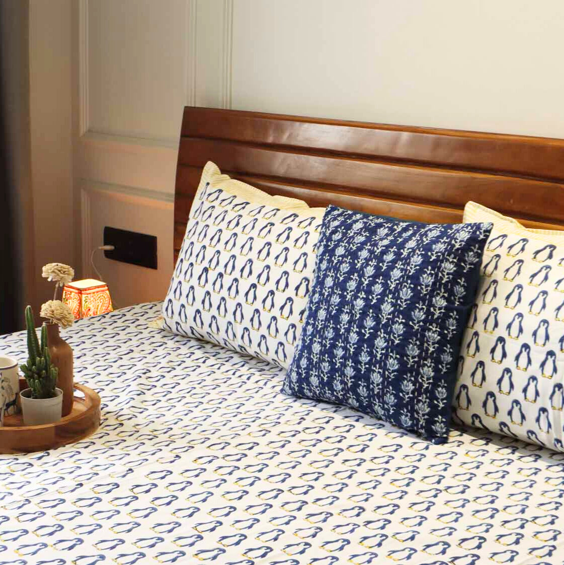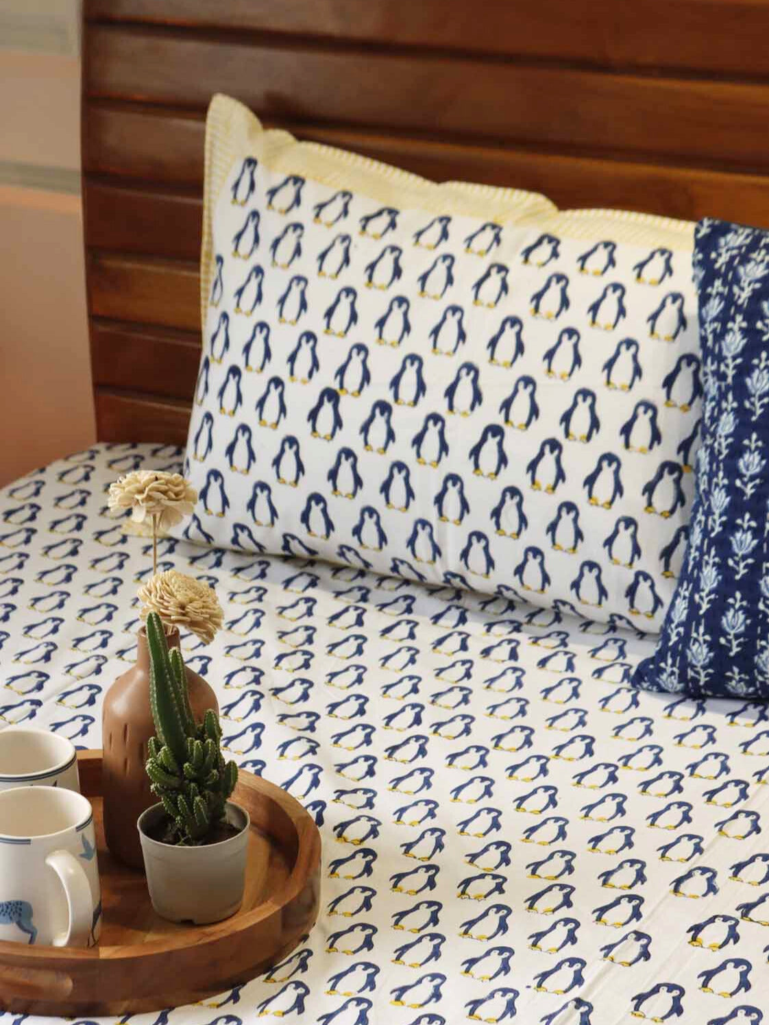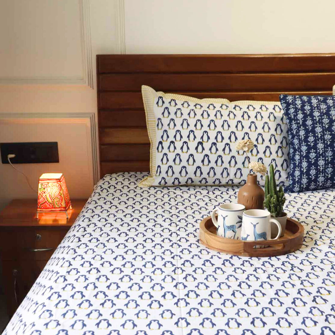 Blue Penguin - Handblock Bedsheet (90x108 Inches and 108x108 inches)