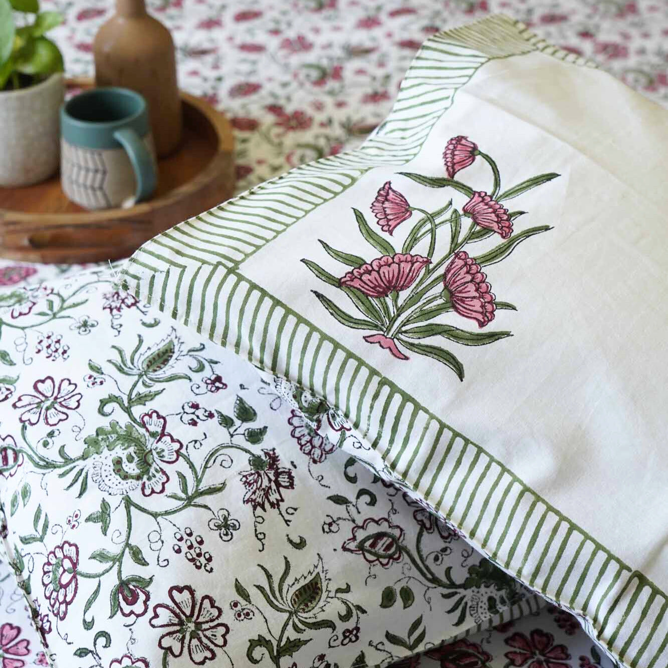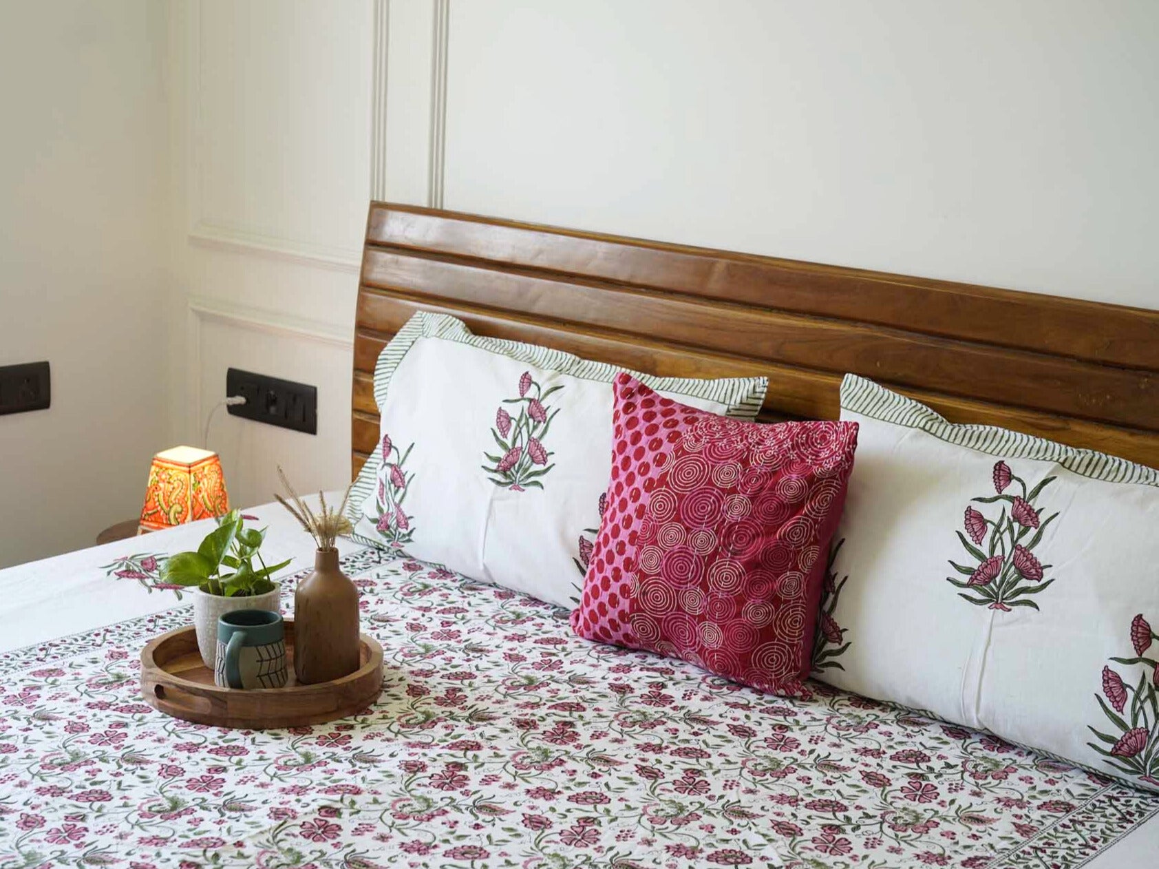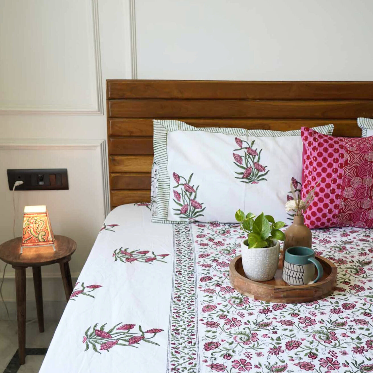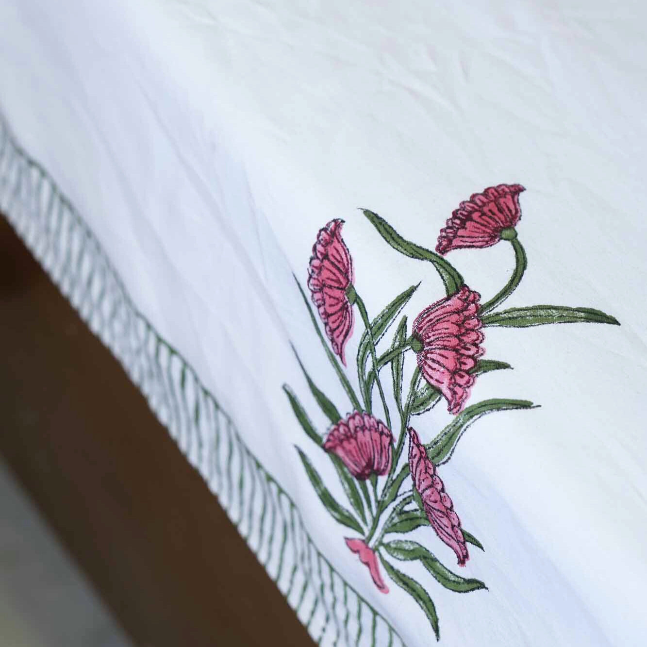 Pink Phool - Hand block Bedsheet (90x108 Inches)