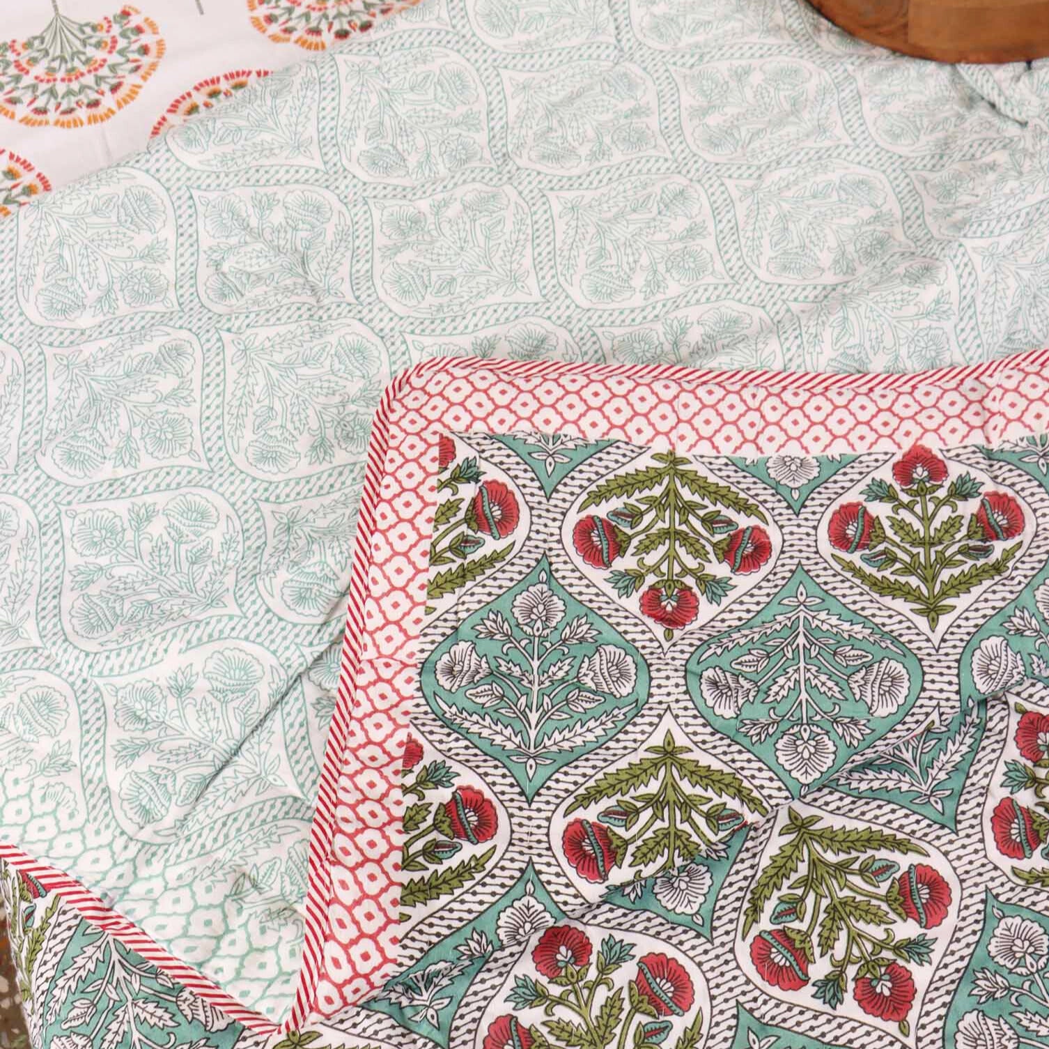 Stuffed with desi cotton—natural, breathable, and doctor-approved—it’s safe for the tiniest babies and beloved by adults who appreciate good sleep. Whether you're bundling up in an air-conditioned room or just need a little comfort, this quilt strikes the perfect balance between cozy and light.