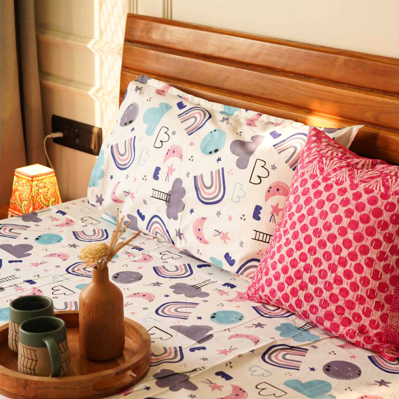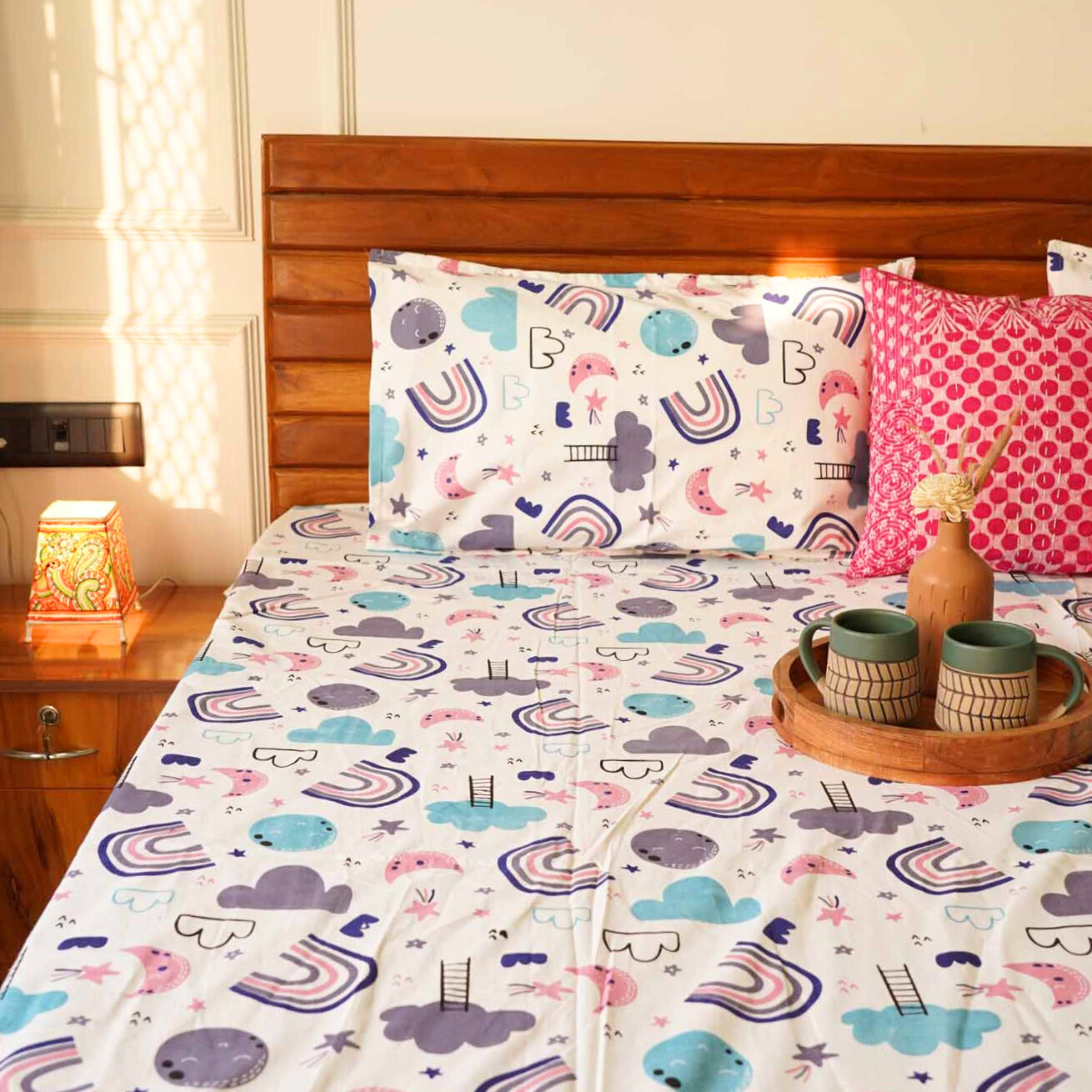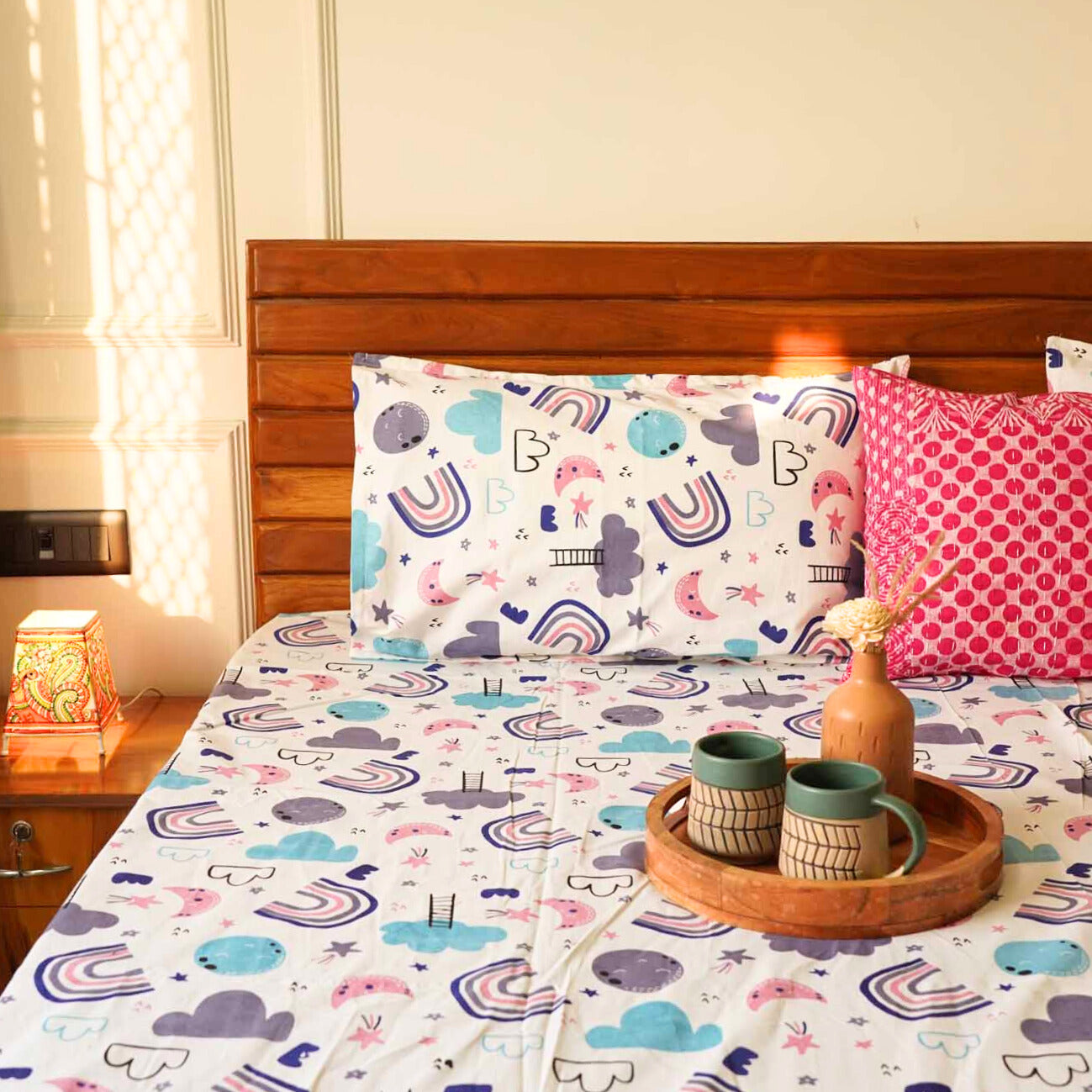 Purple Rainbow - Single Bed/ Double Bed Bedsheet (Single - 60 x 90 Inches, Double -90x108)