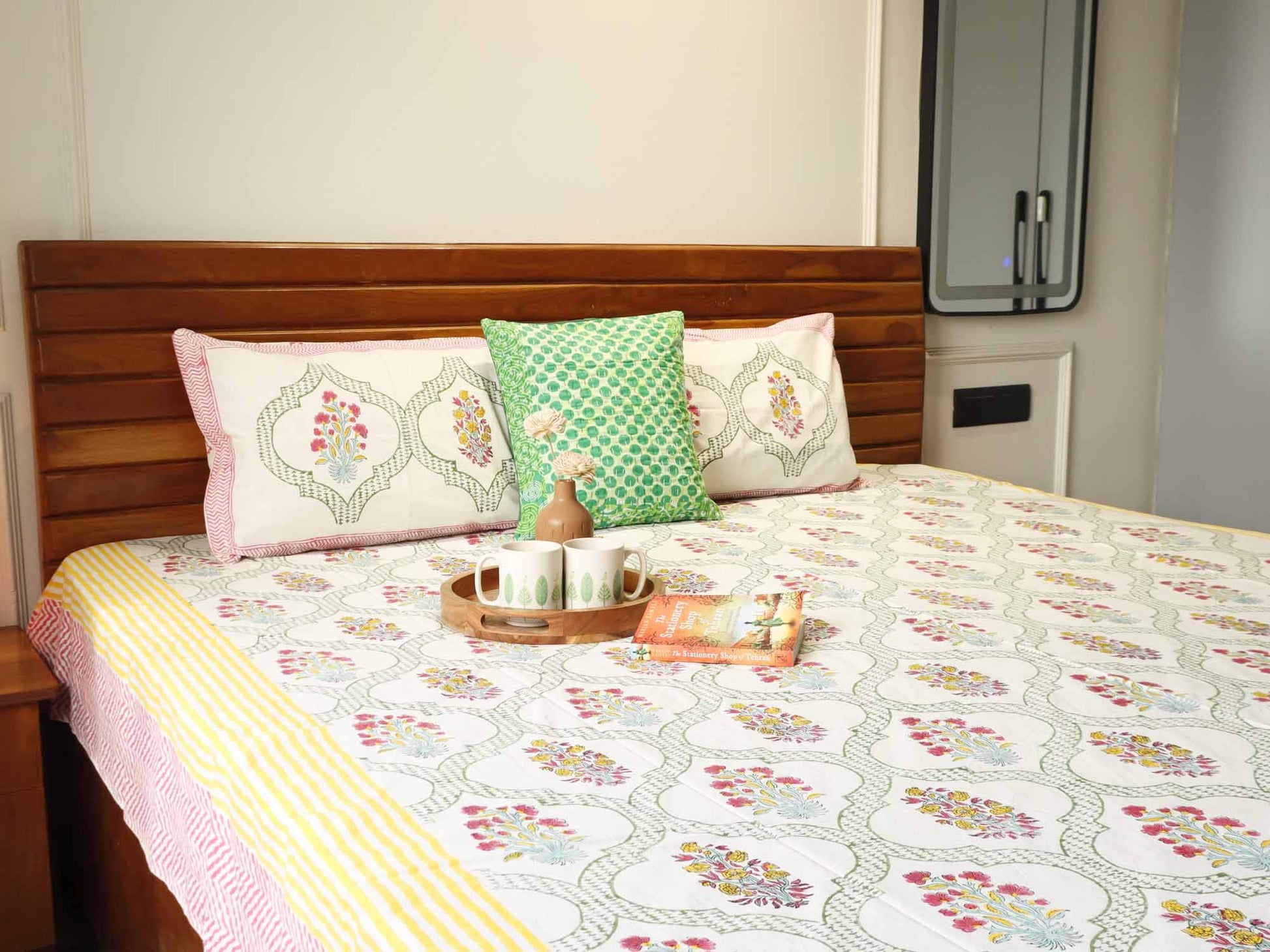 This Bedsheet's magic keeps you cool, even in scorching heat! Made from 100% pure cotton (doctors-approved for your best sleep), it’s the perfect mix of comfort and style. The subtle  colors and top-notch quality will make your room pop, and soon, you'll be hooked and asking for more!