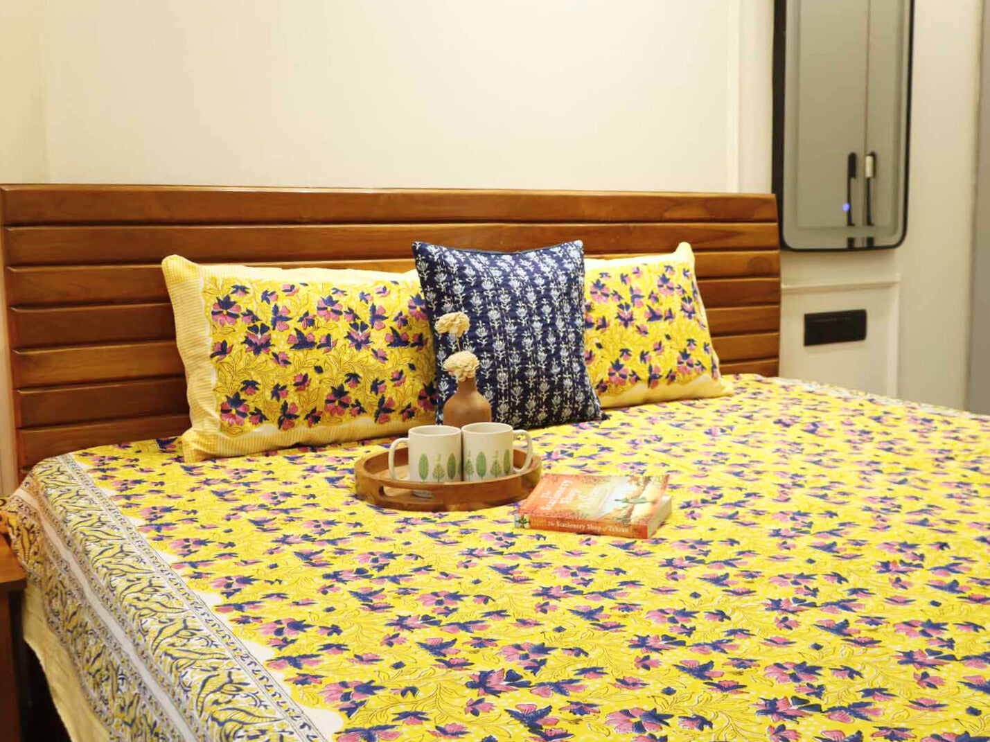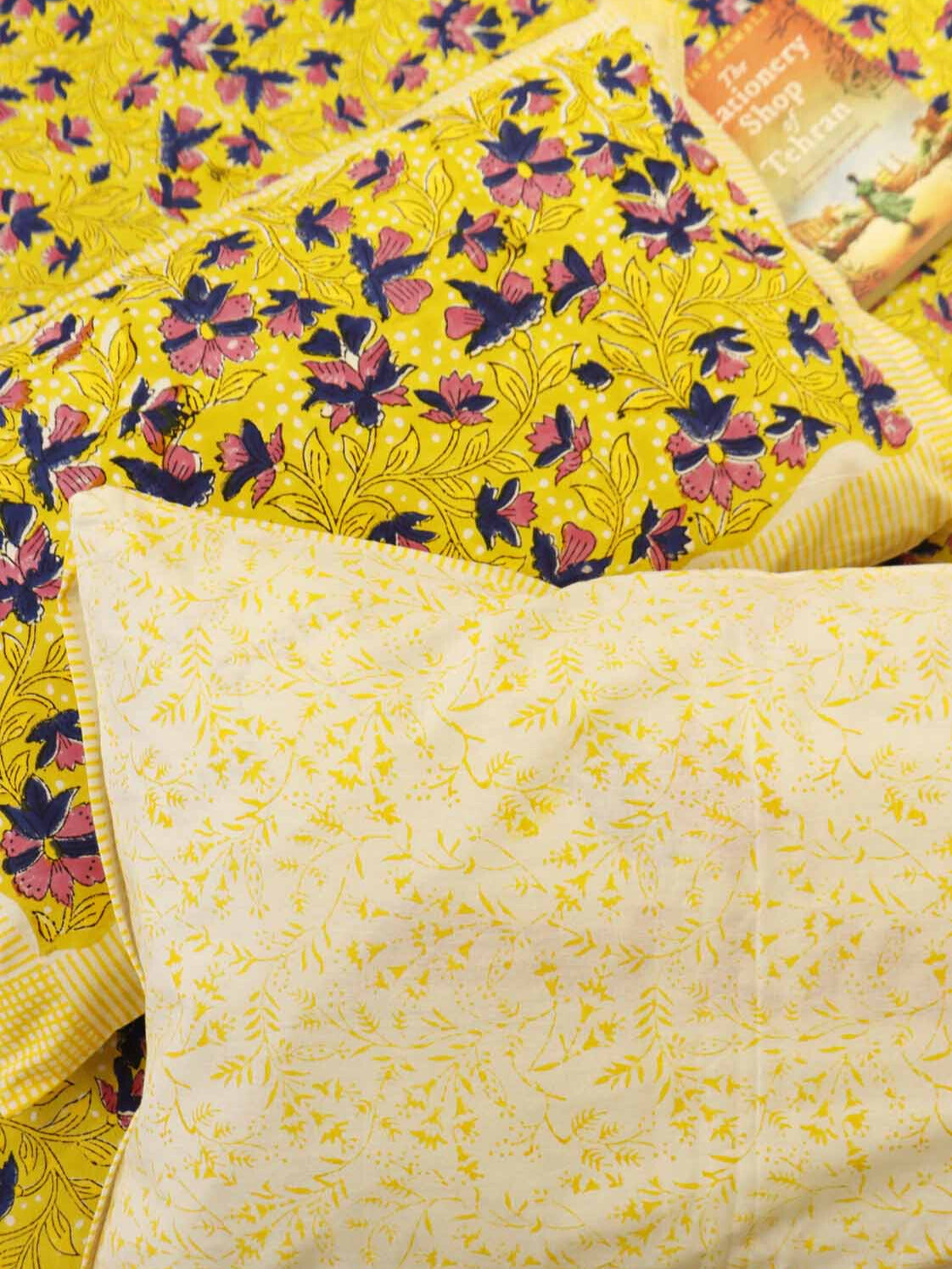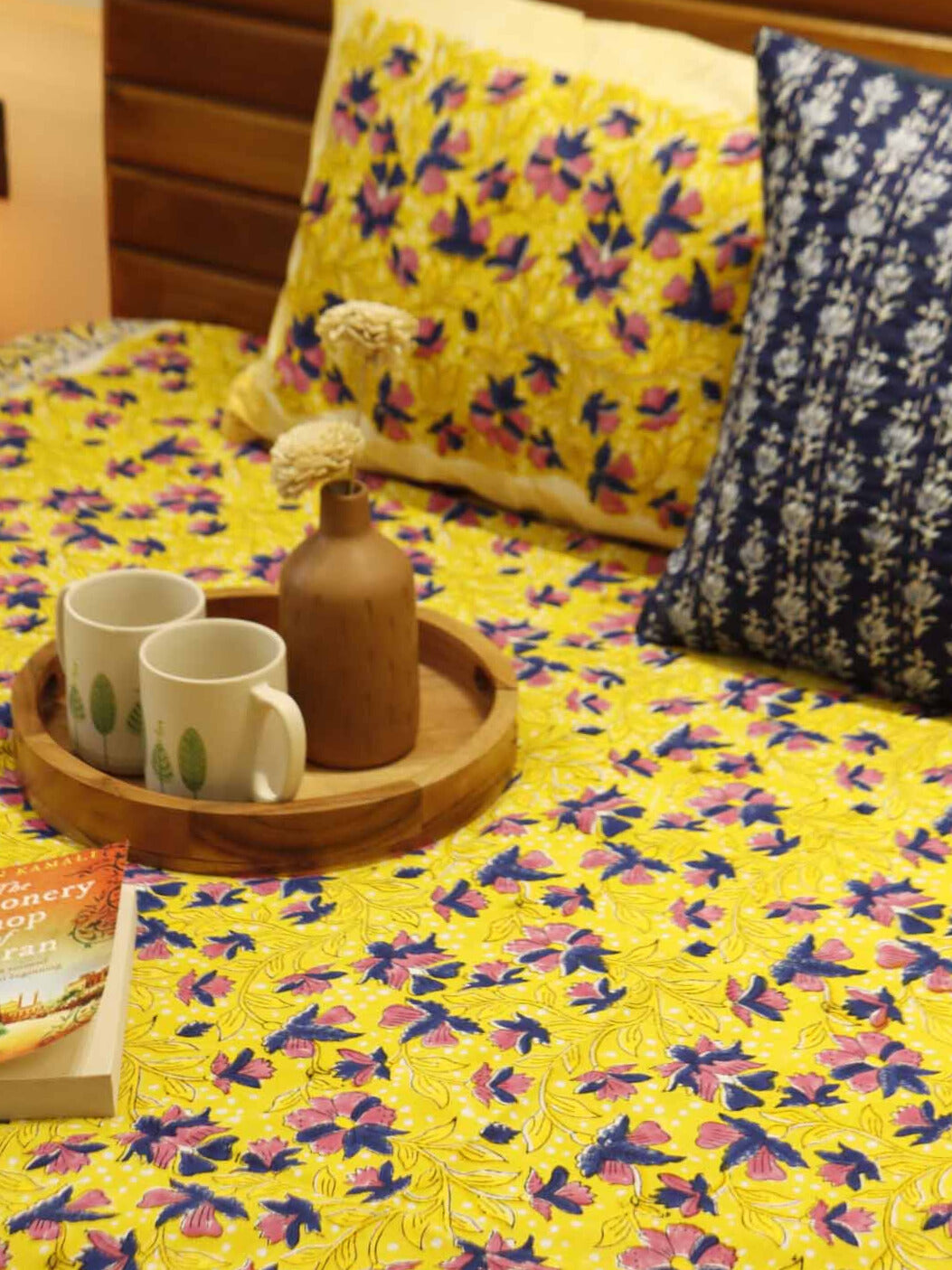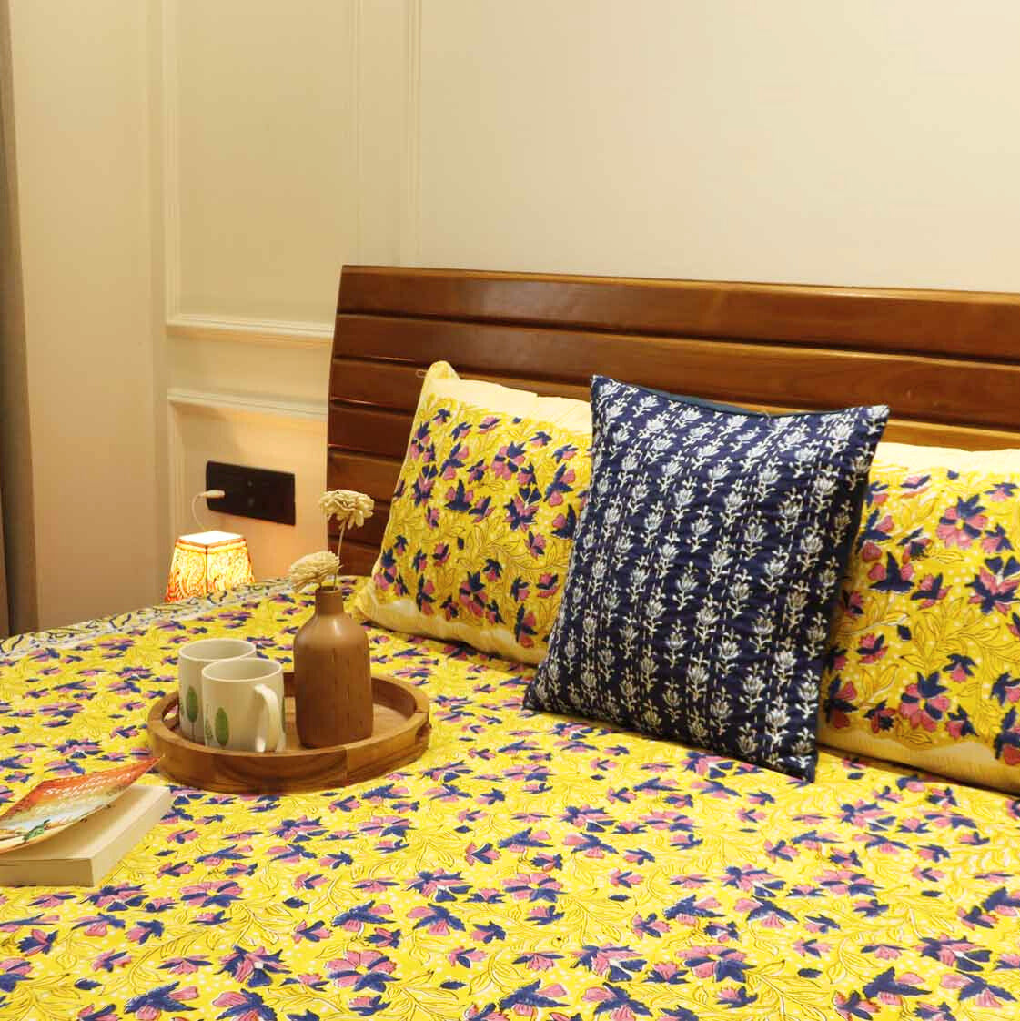 Yellow - Handblock Bedsheet (100x108 Inches)