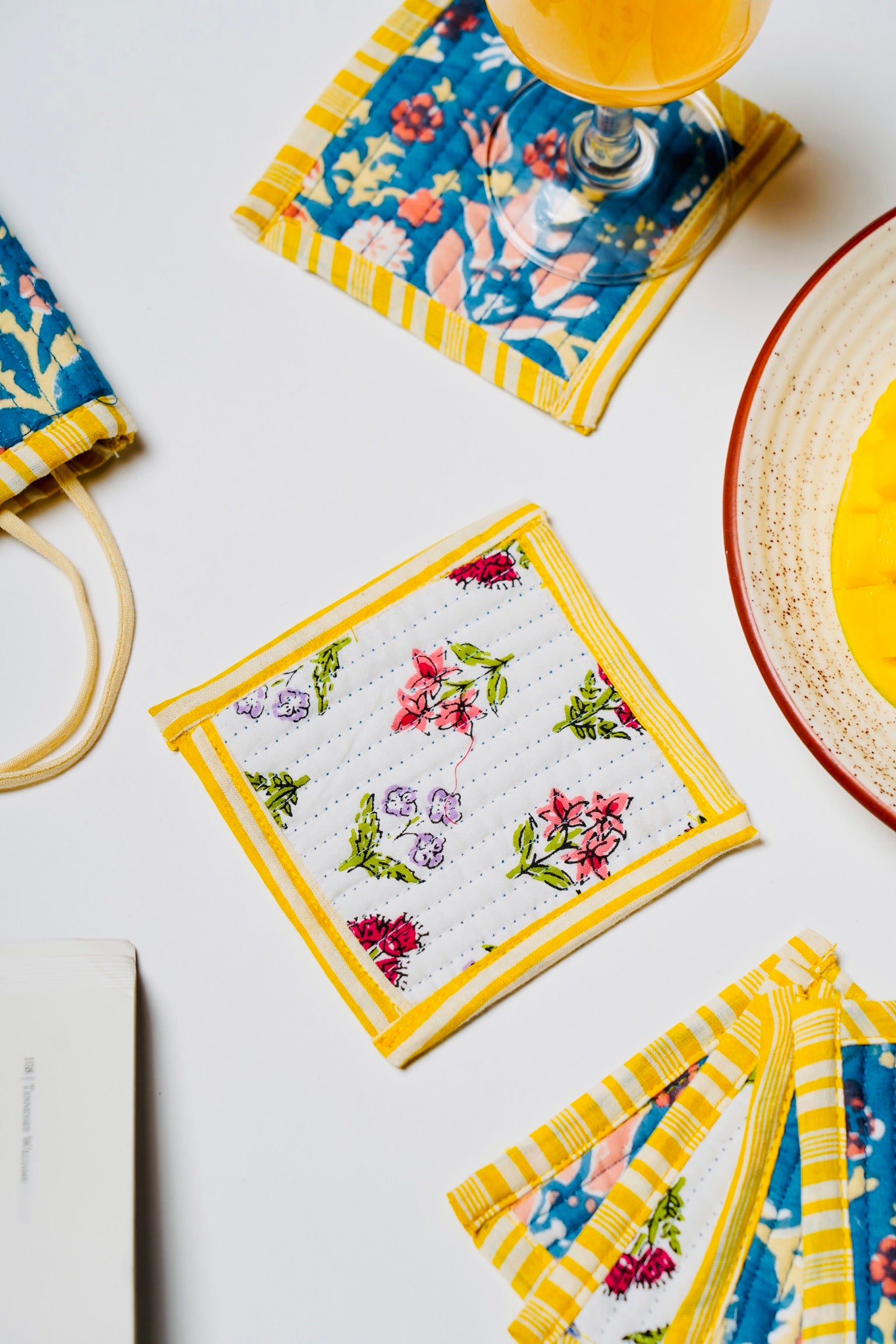 Zero Waste Fabric Coasters - Set of 6 with Pouch